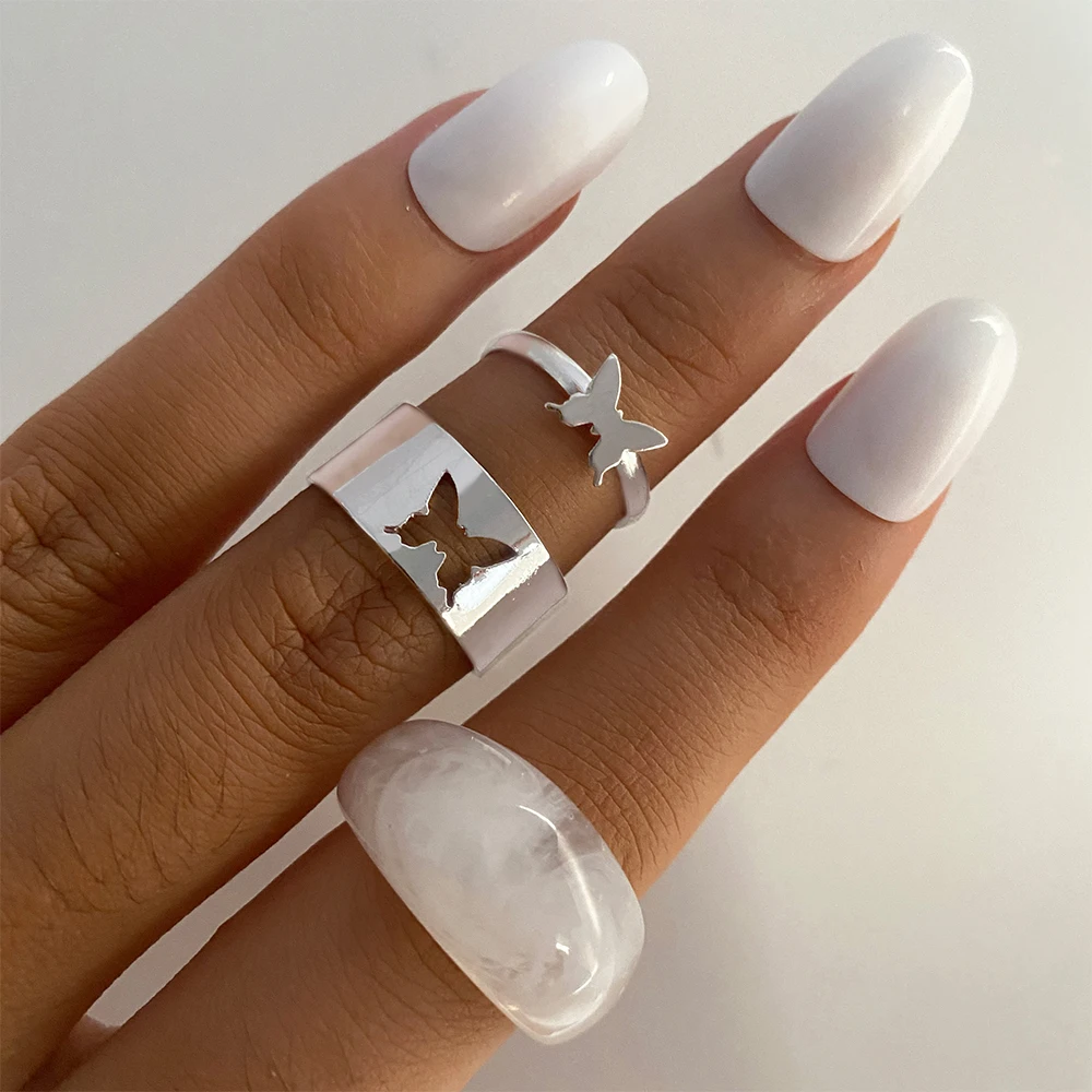 Женский винтажный набор колец ZOVOLI Y2K с серебряным сердечком, мо...