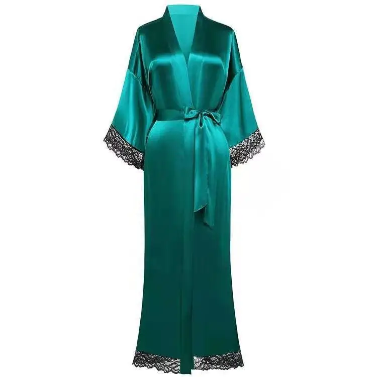 Женский халат-кимоно из искусственного шелка, свадебная кружевная Цветочная одежда для невесты, халат, сексуальная Женская Осенняя длинная домашняя пижама