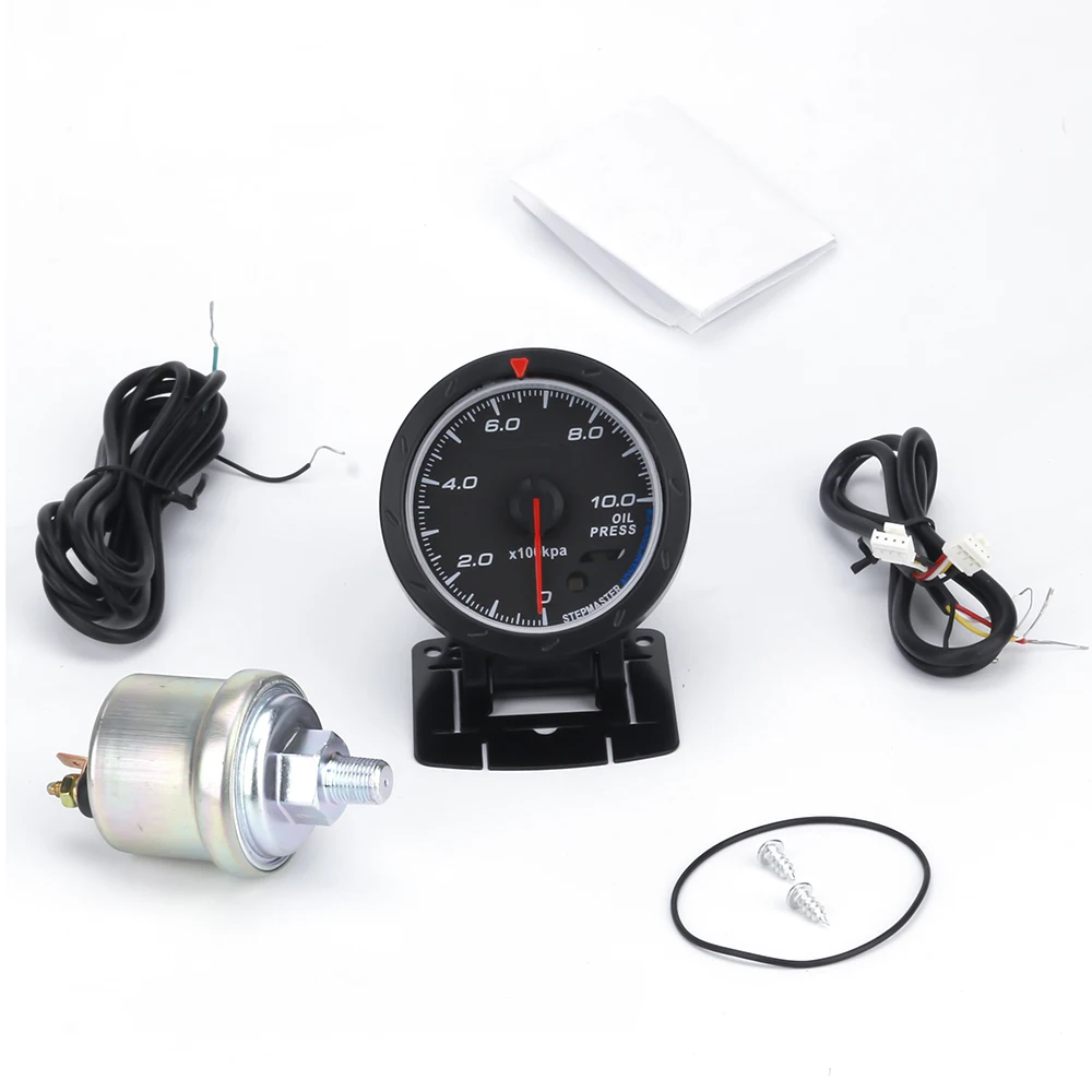 Масляный Пресс для автомобиля, измеритель диаметром 60 мм, с белым и красным светом и датчиком давления масла, диапазон 0-10 бар