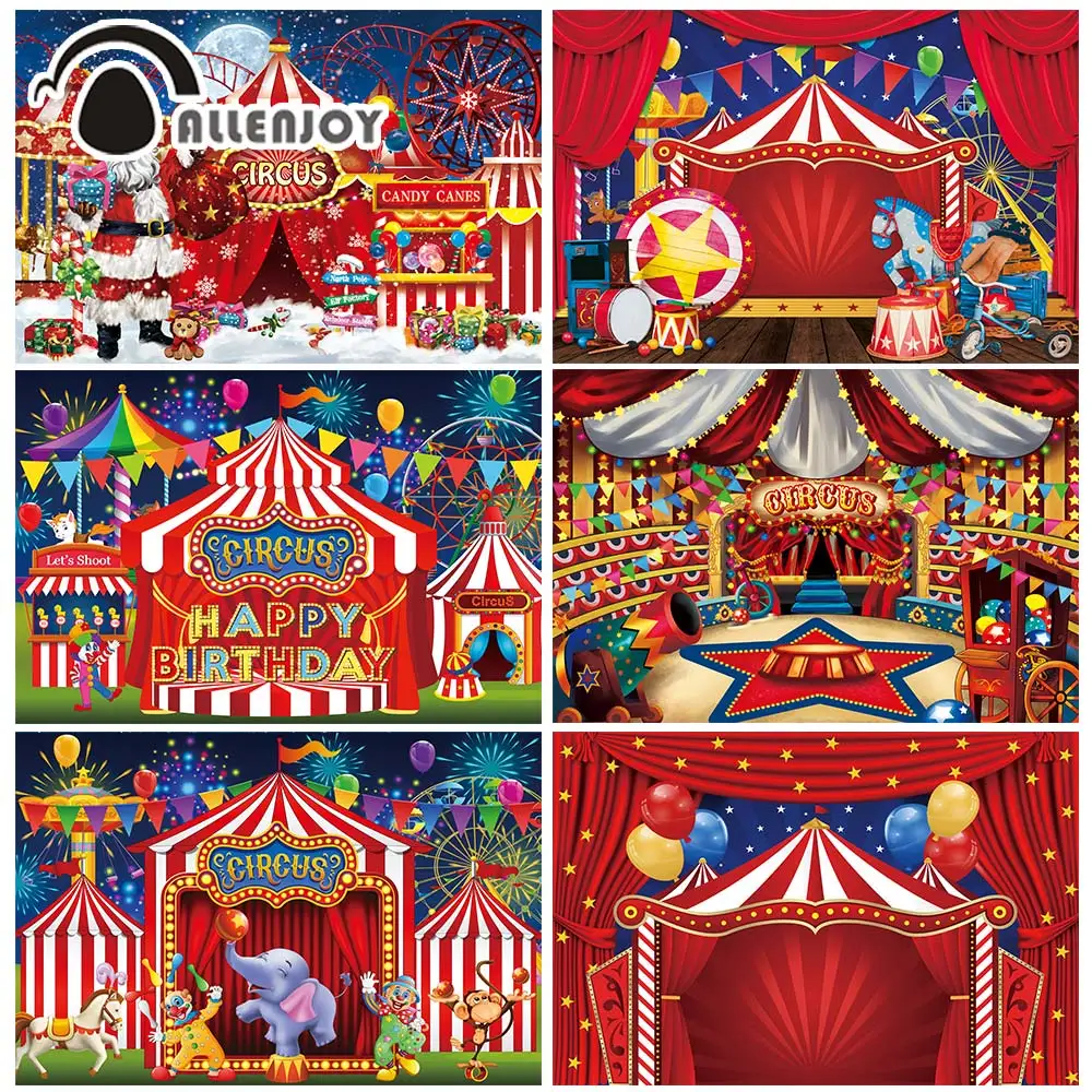 Allenjoy день рождения цирковой шатер-фон вечевечерние НКА золотые флаги синие красные розовые полосы дети воздушные шары звезды фотосессия фон
