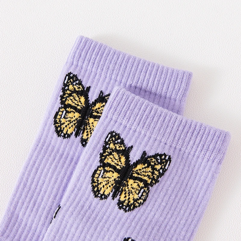 Новые носки с бабочками, женская уличная одежда в стиле Харадзюку, милые модные смешные Хлопковые женские носки с вышивкой и принтом животных, средние Носки