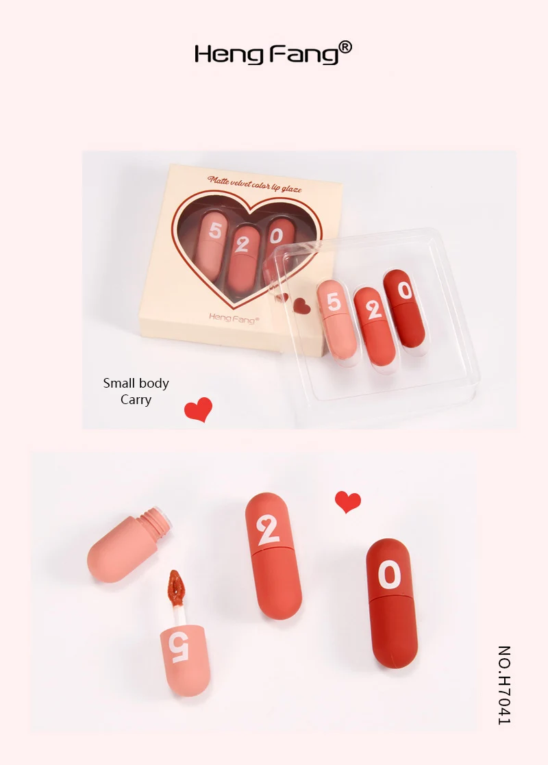 Матовая бархатная губная помада, 3 шт.компл., миниатюрный капсульный блеск для губ, легко окрашивается, стойкая водостойкая губная помада TSLM1