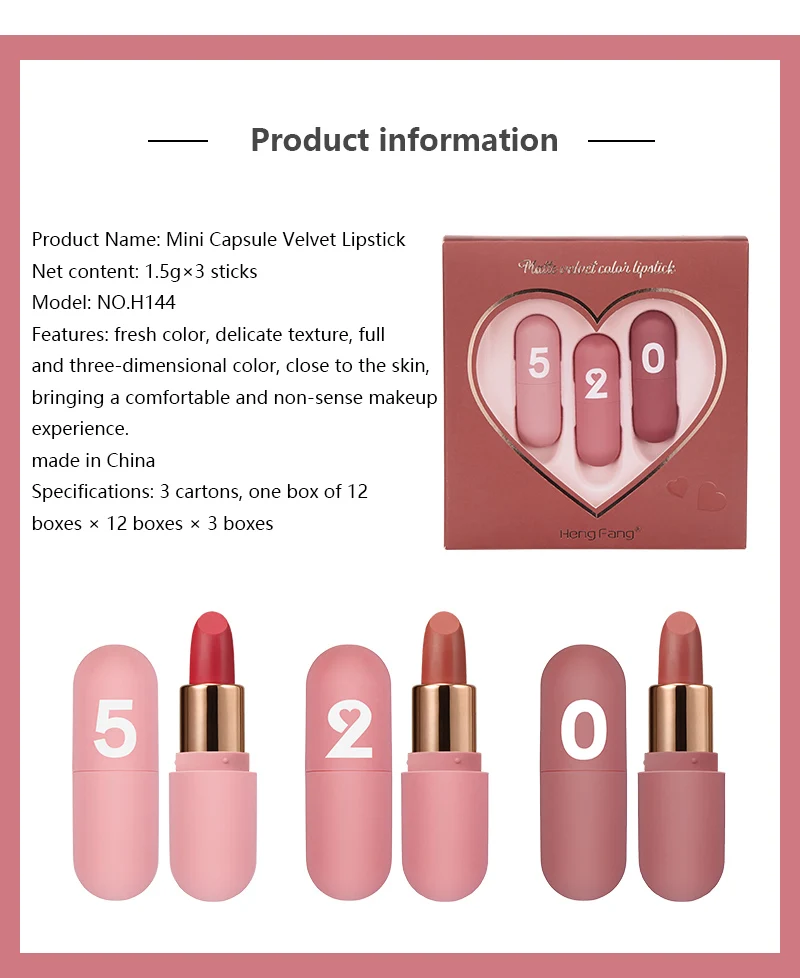 3 шт.компл. мини капсульные бархатные матовые губные палочки длител...