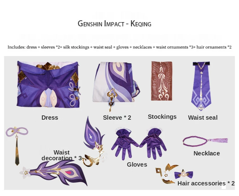 Genshin Impact Keqing, Фиолетовый Игровой костюм, женское платье, к...