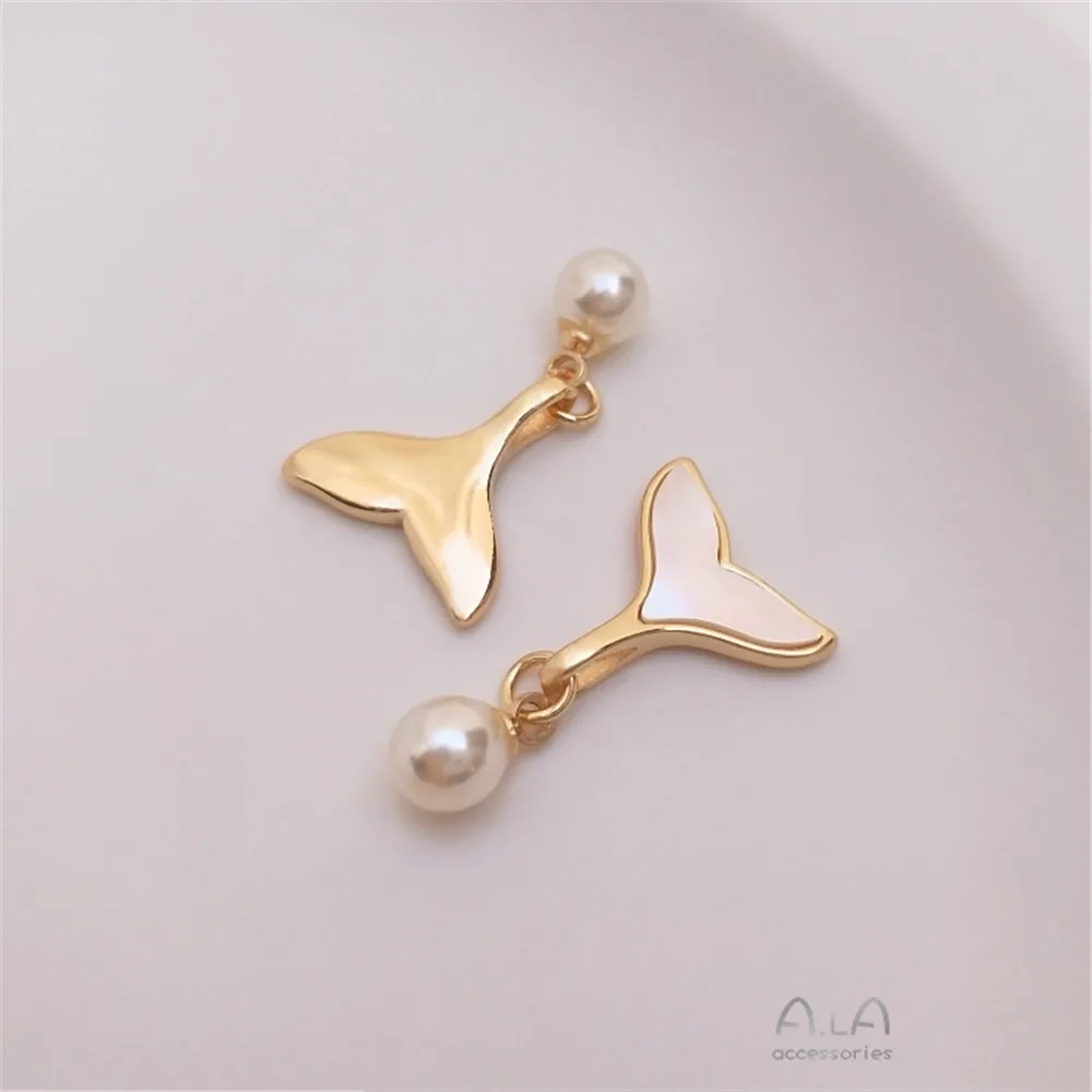 Инкрустированный натуральной морской ракушкой 14K, подвеска с Бусиной в виде хвоста Кита, сделай сам, ожерелье ручной работы, аксессуары