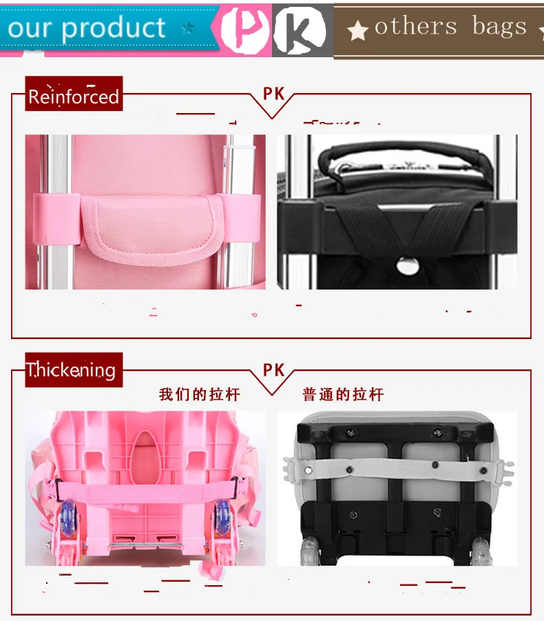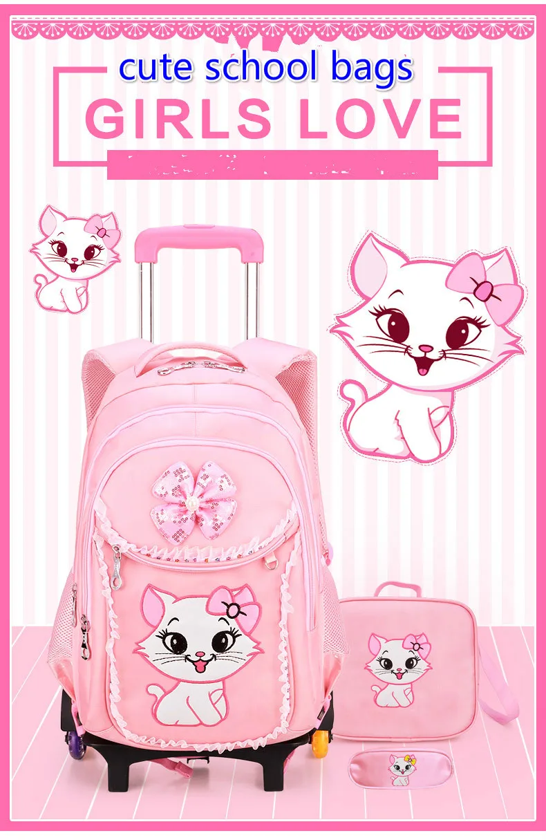 Школьный рюкзак на колесиках для девочек, съемный ранец с мультяшным рисунком кошки, школьная сумка принцессы