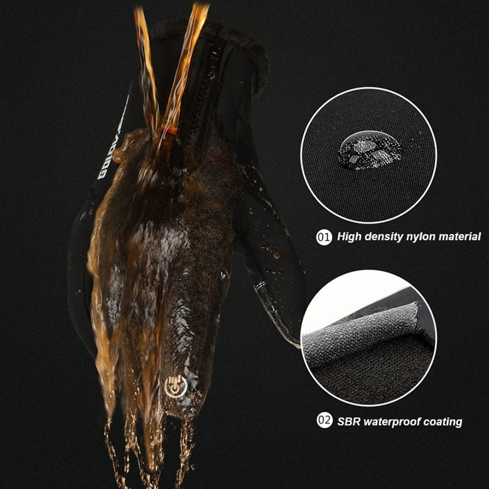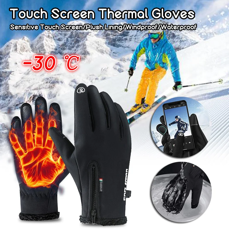Зимние мужские перчатки для сенсорных экранов, водонепроницаемые, ветрозащитные, зимние теплые модные черные перчатки на молнии для езды на велосипеде и вождения
