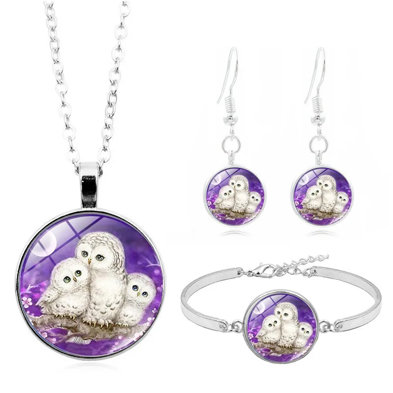 Набор ювелирных изделий с изображением милой совы, кабошон, стеклян...