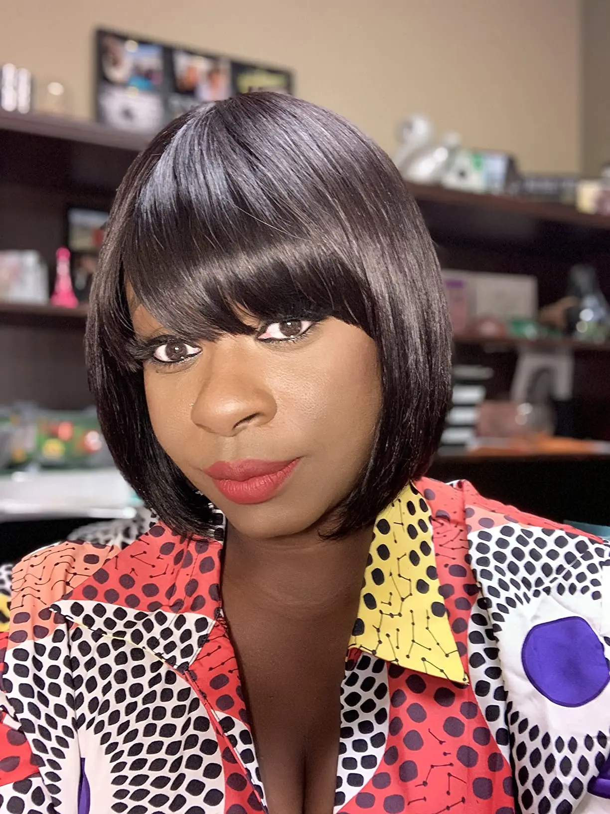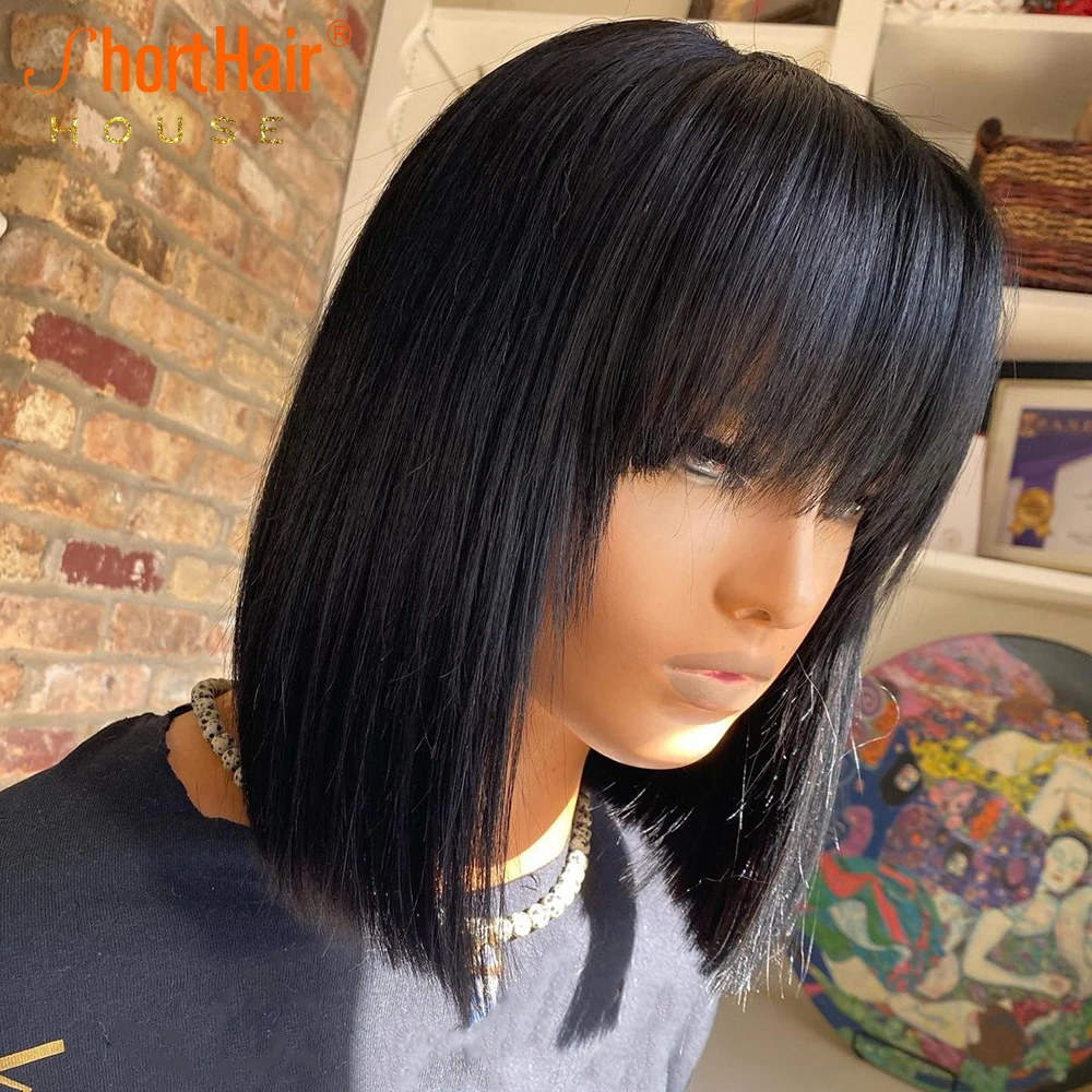Парик блонд хайлайтер короткий Боб с полной челкой бразильские человеческие волосы парики для женщин без кружева передний парик натуральные черные парики