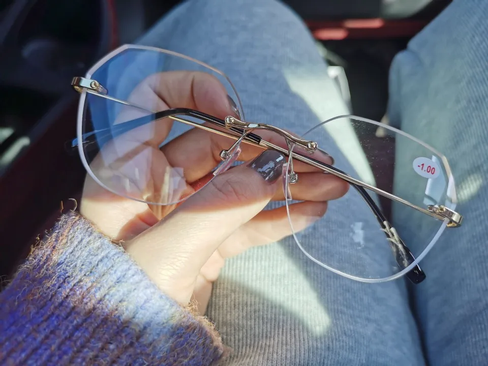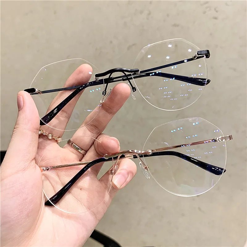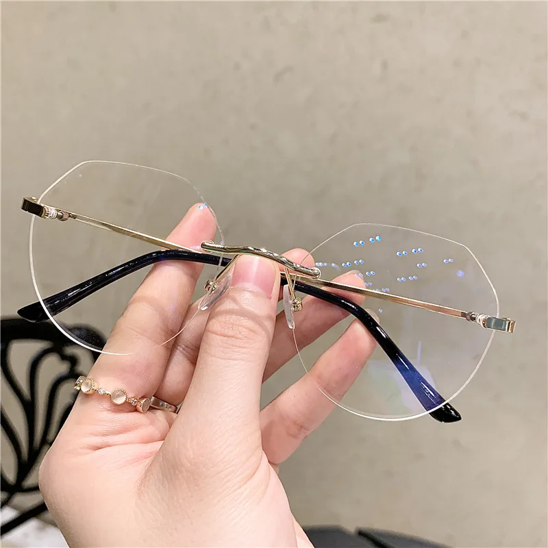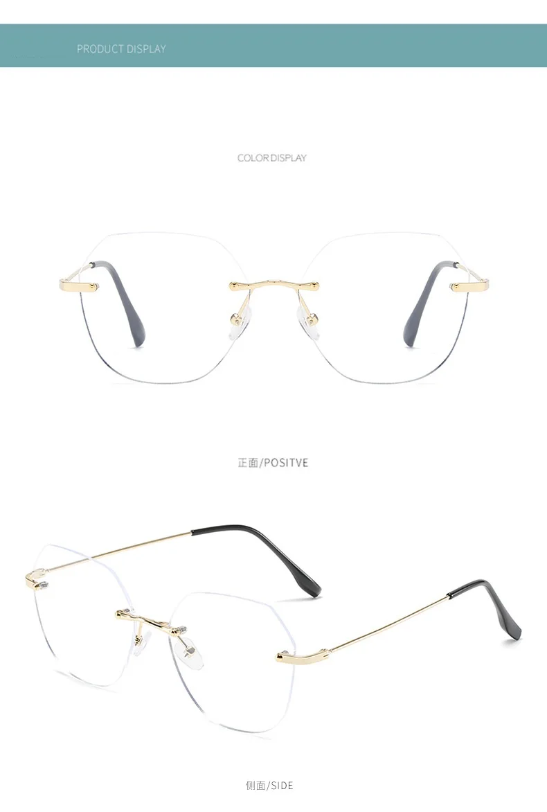 Женские очки для близорукости без оправы, металлические многоугольные очки, элегантные аксессуары от 0,5 до 1,0