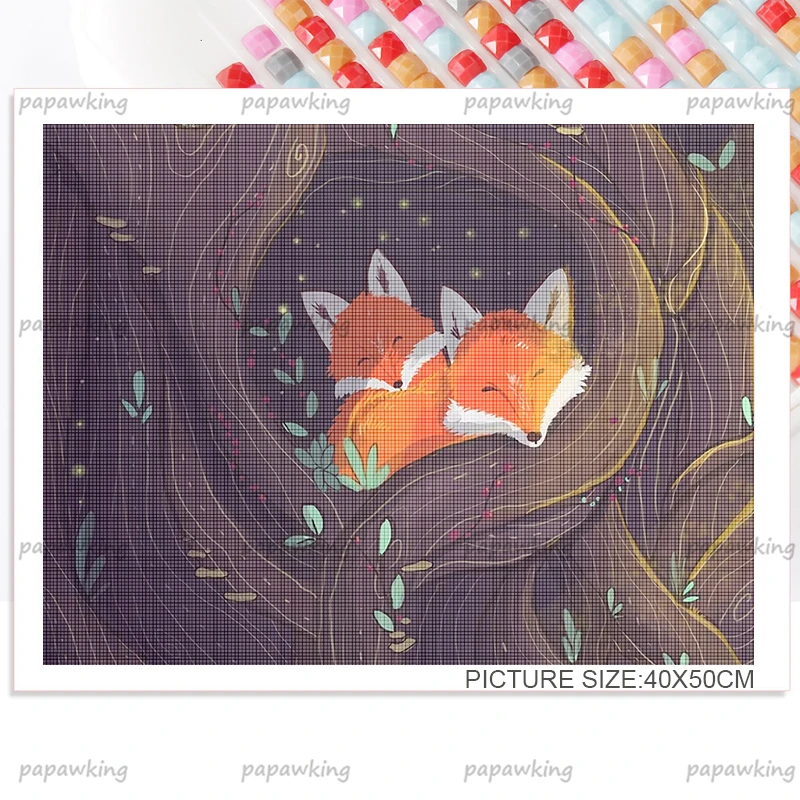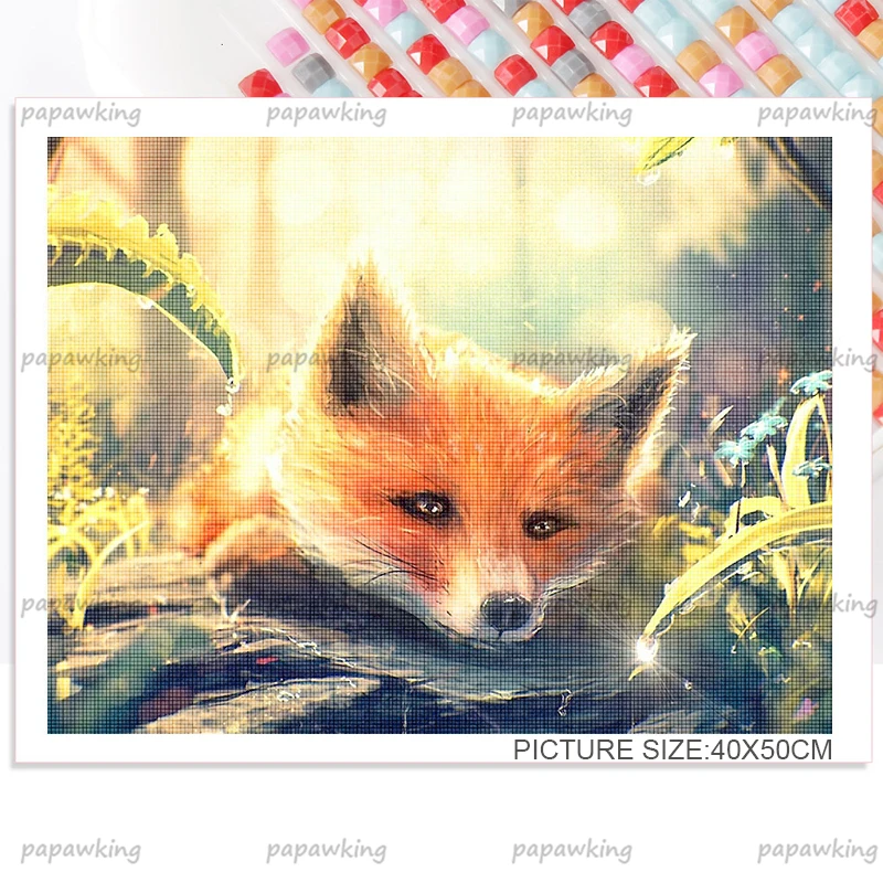 Алмазная вышивка с изображением лисы, квадратныхкруглых животных, н...