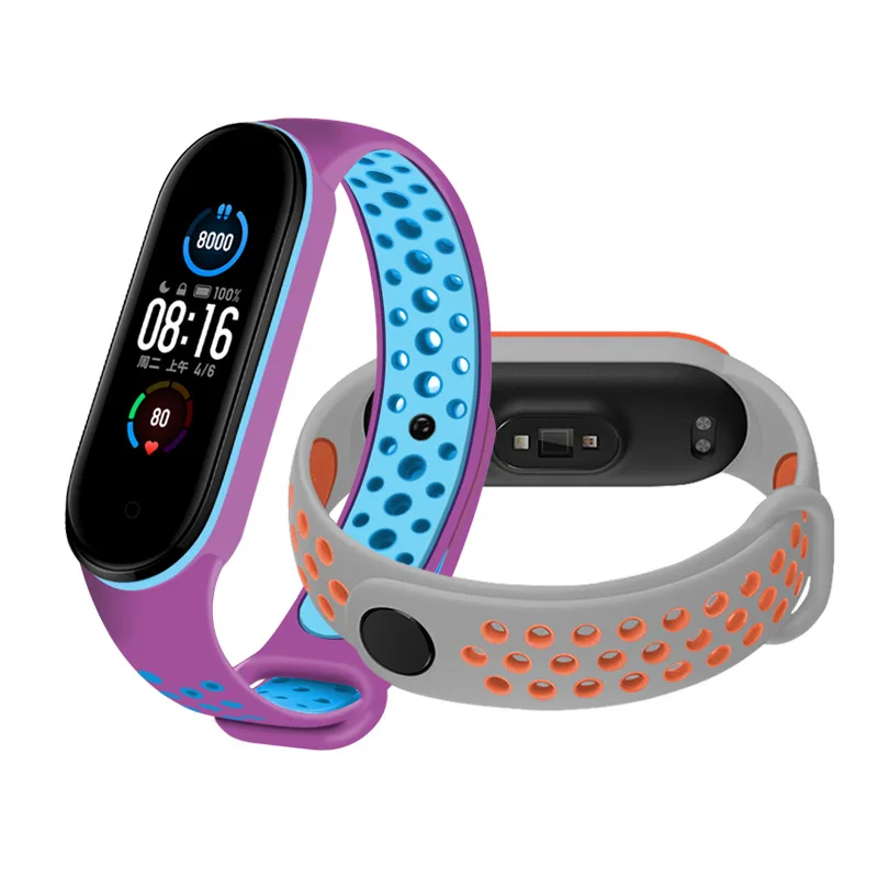 Силиконовый ремешок для Xiaomi Mi Band 5 4 3 6 пористый двухцветный...