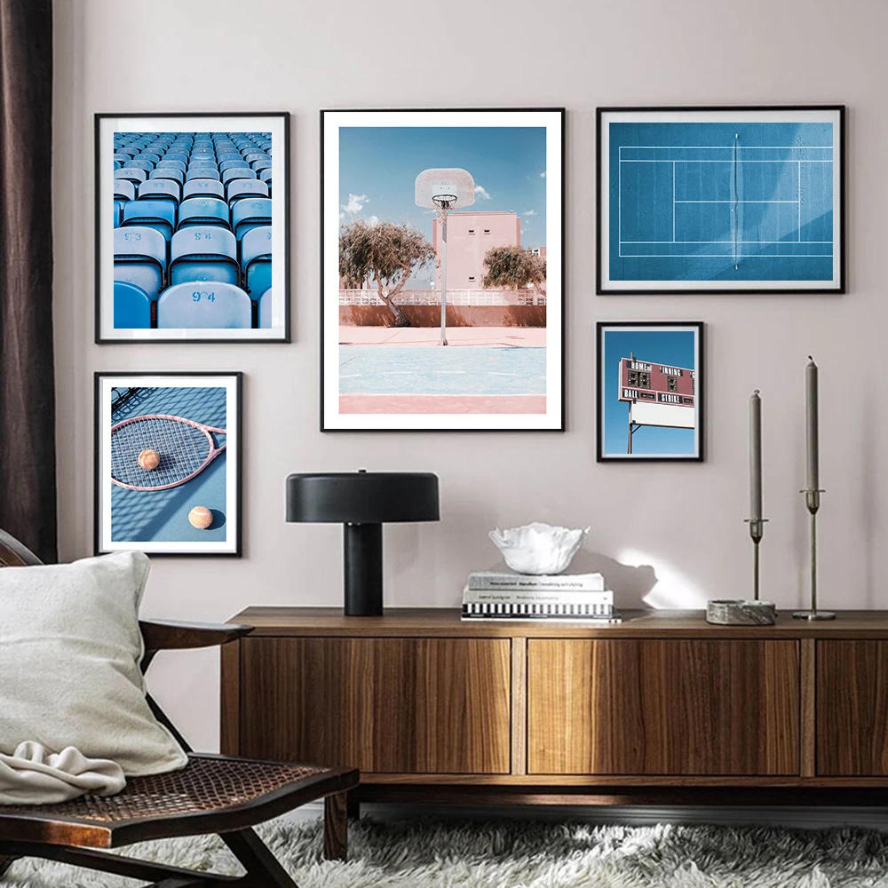 Теннисные голубые сиденья, план баскетбола, настенные художественные плакаты с принтами, спортивные холщовые постеры, Настенный декор, старая школа, ободряющий подарок