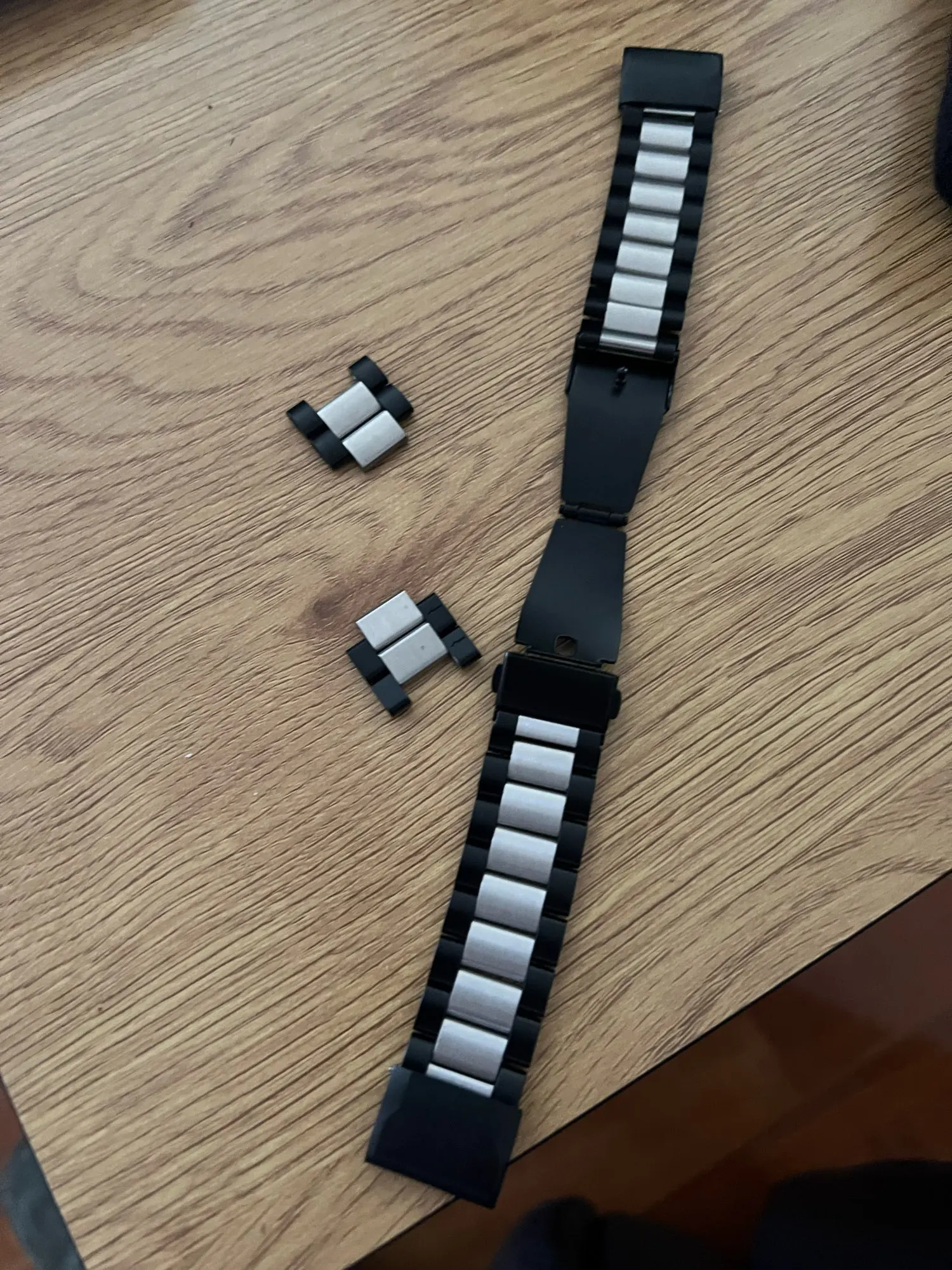 Это хороший ремешок, но вы можете удалить только 3-мя небольшими ссылки на каждой стороне обеспечивают работу, если вы имеете большое наручные браслет не для вас, великолепная вещь band я с нетерпением жду если вам понравилась эта игра есть мой Garmin