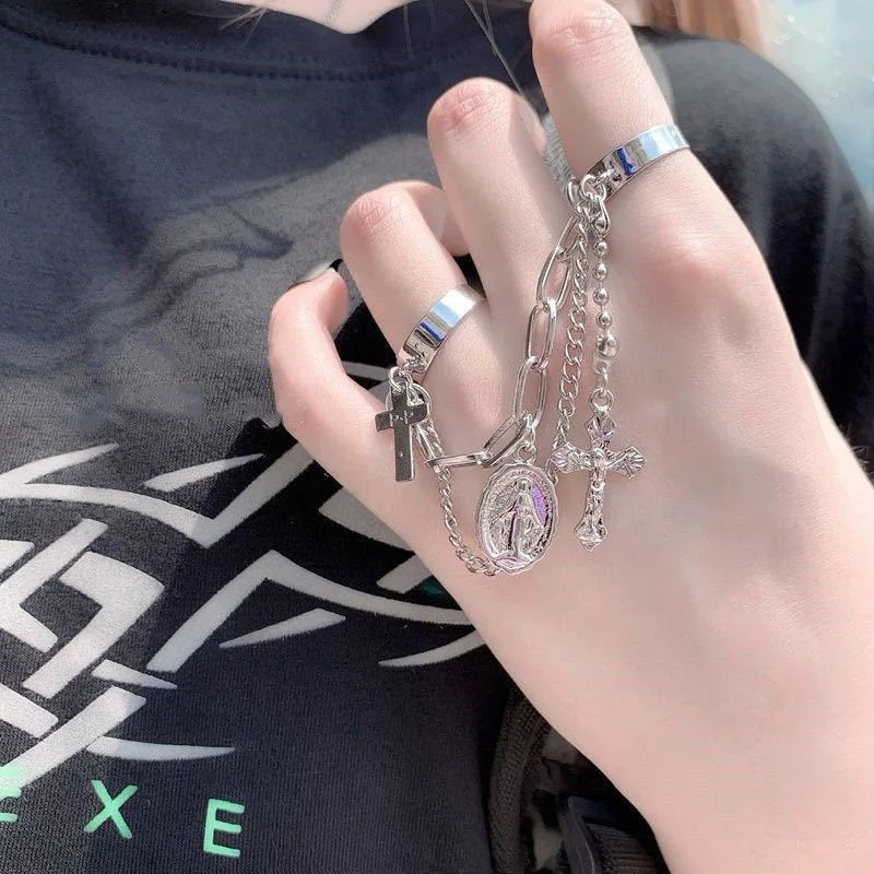 Крутые кольца в стиле панк, хип-хоп, для женщин, многослойная Регулируемая цепочка, открытый палец, мужское вращающееся кольцо, Модная бижутерия, подарок для вечеринки