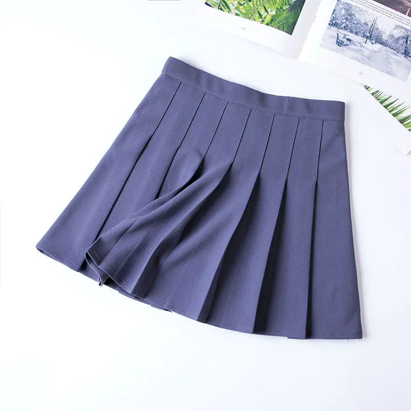 Юбка-мини в стиле Харадзюку, летняя однотонная Плиссированная, с вы...