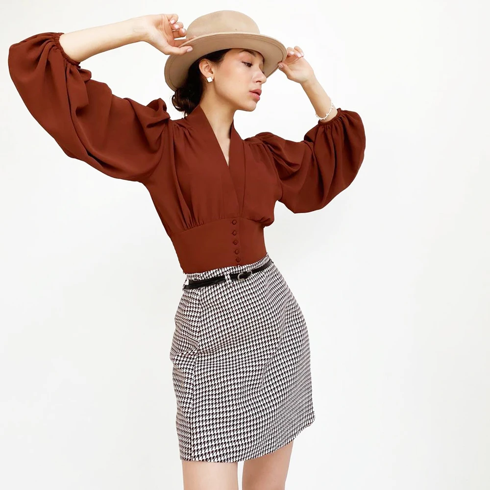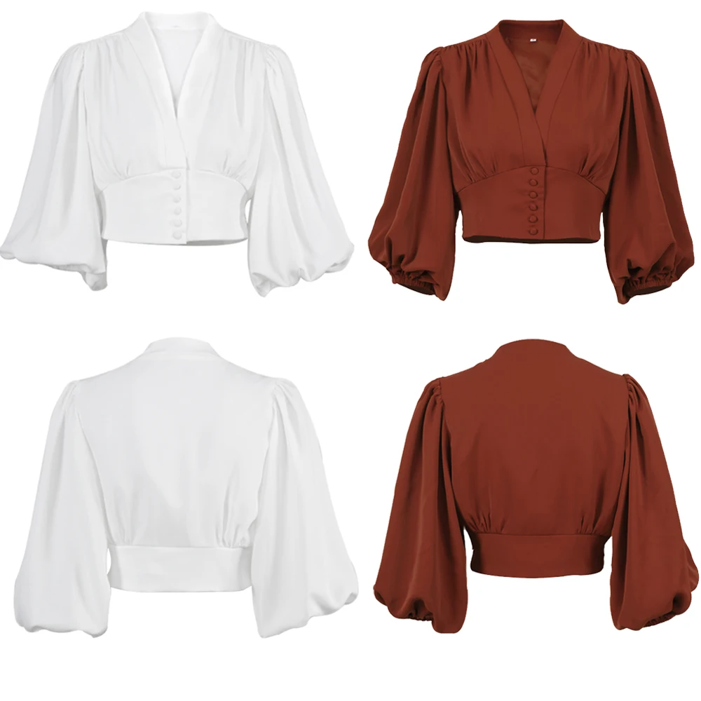 2021, Ретро стиль, рукав-фонарик, женские укороченные блузки, винта...