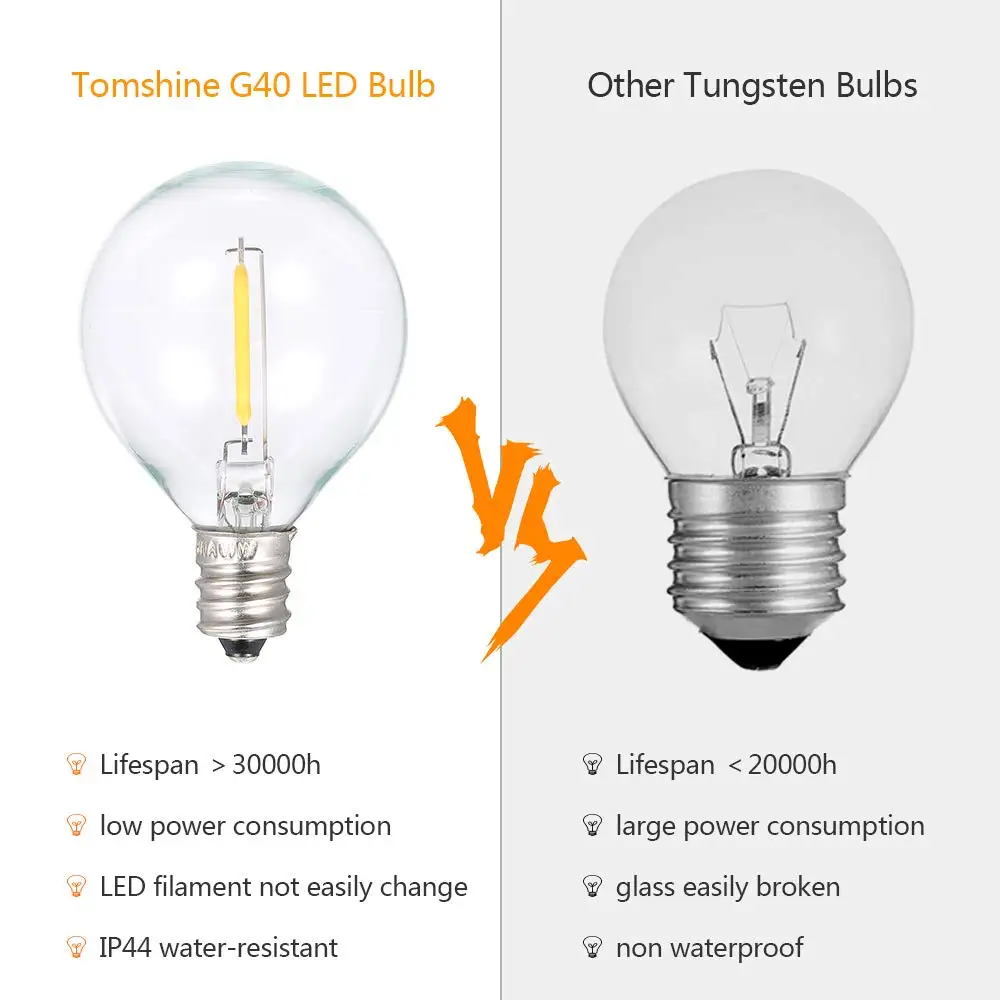 [Усовершенствованная Водонепроницаемая Технология]: наш светодиодный светильник G40 разработан с использованием водонепроницаемой технологии, особенно для наружного применения, которая может выдерживать любую сильную погоду-сильный дождь или снег, сильные штормы, ультра-высокая или низкая температура. Обратите внимание, что этот продукт достигает только IP45 и не достигает уровня долгосрочного погружения в воду.