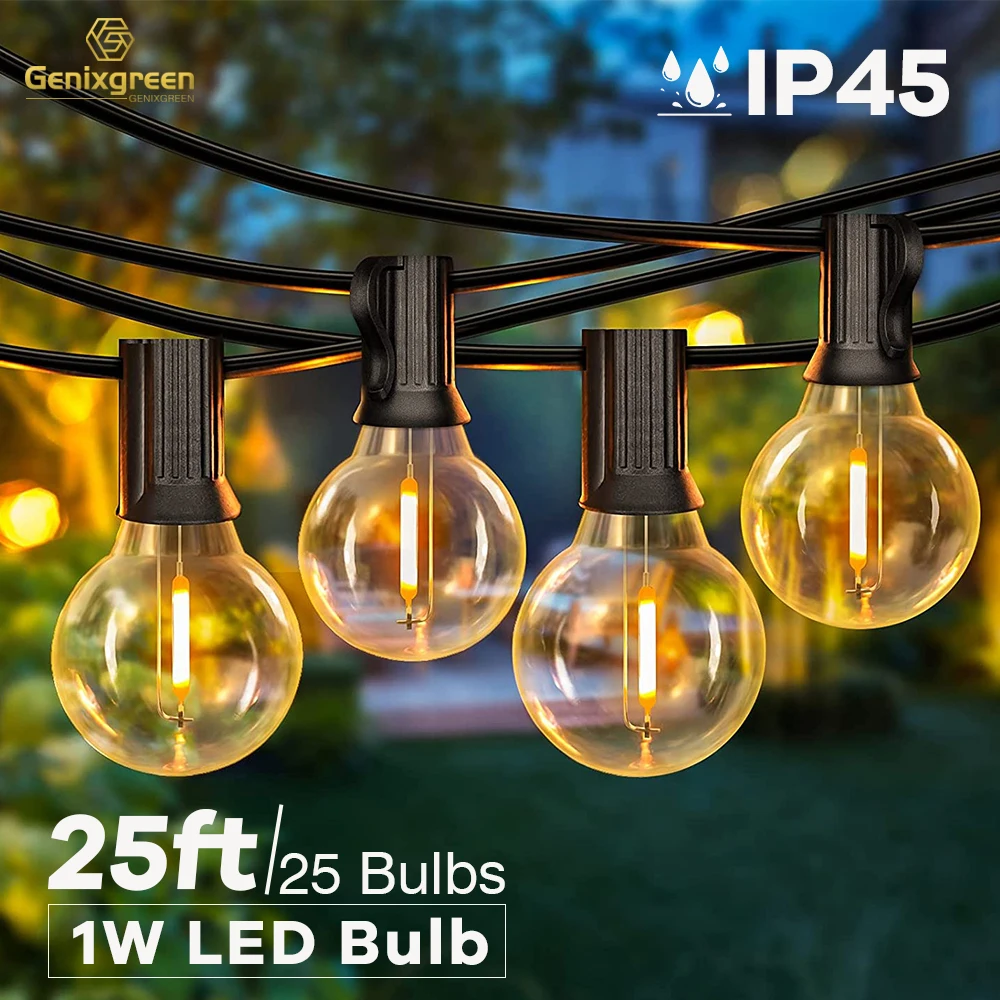 IP45 25FT Сказочный струнный светильник s наружный Рождественский декоративный светильник 1W G40 Led Глобус лампы патио струнный светильник вечерние гирлянды для свадьбы