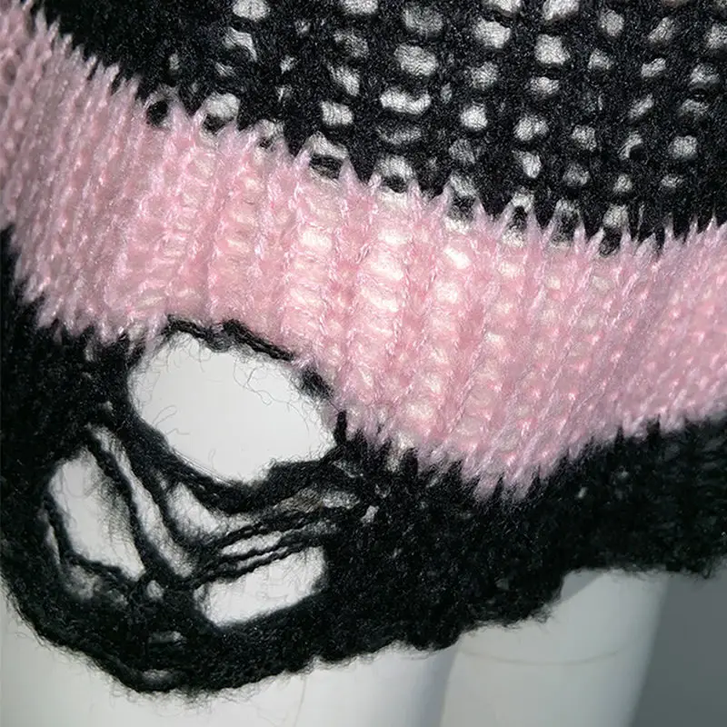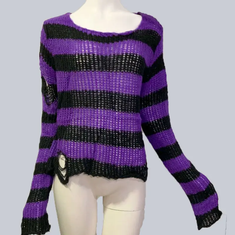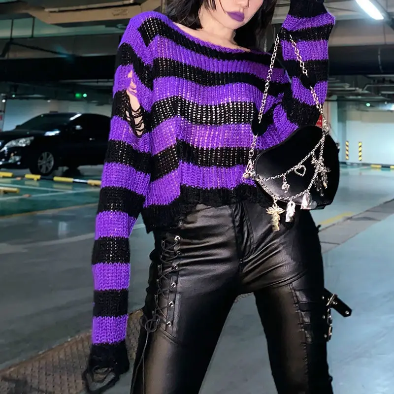 Женские пуловеры Harajpoo, готический черный укороченный пуловер с вырезами, осень 2021, Харадзюку, свободный тонкий вязаный свитер в полоску в стиле панк