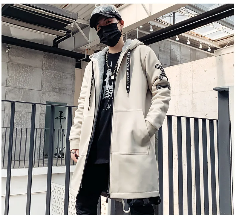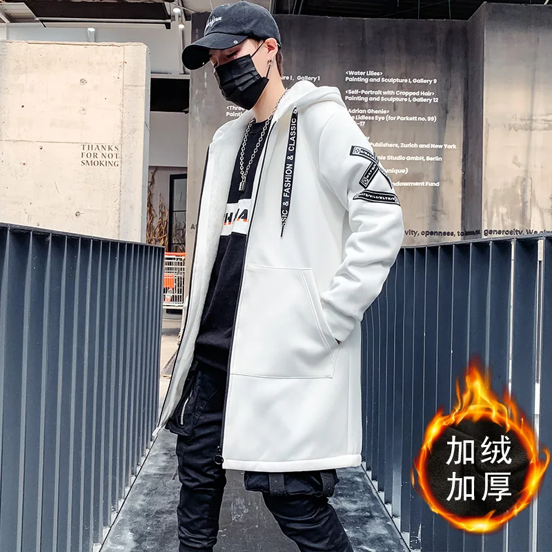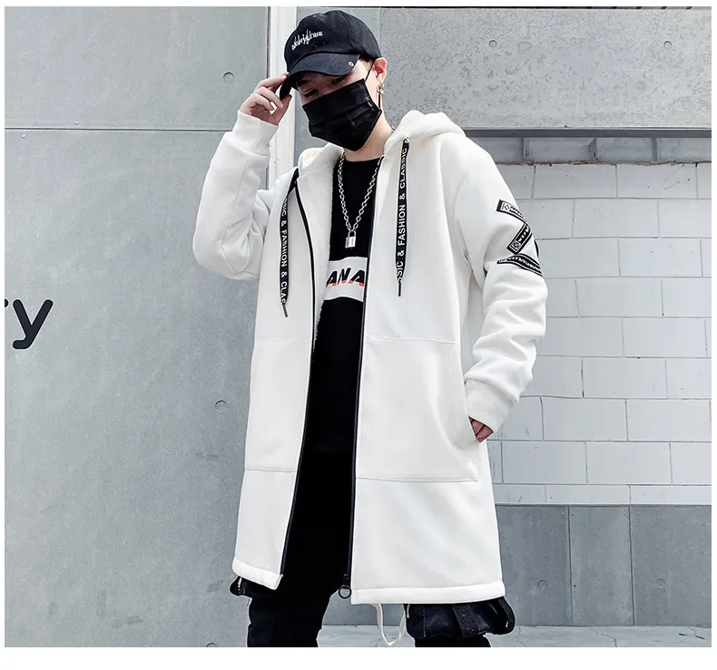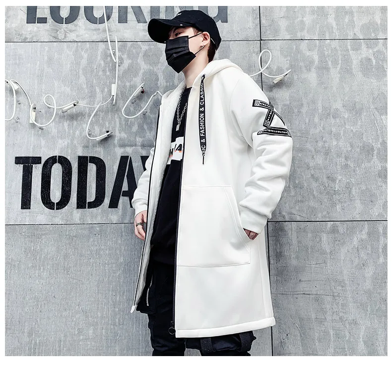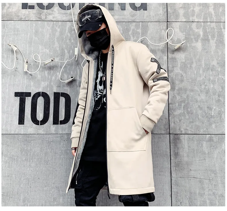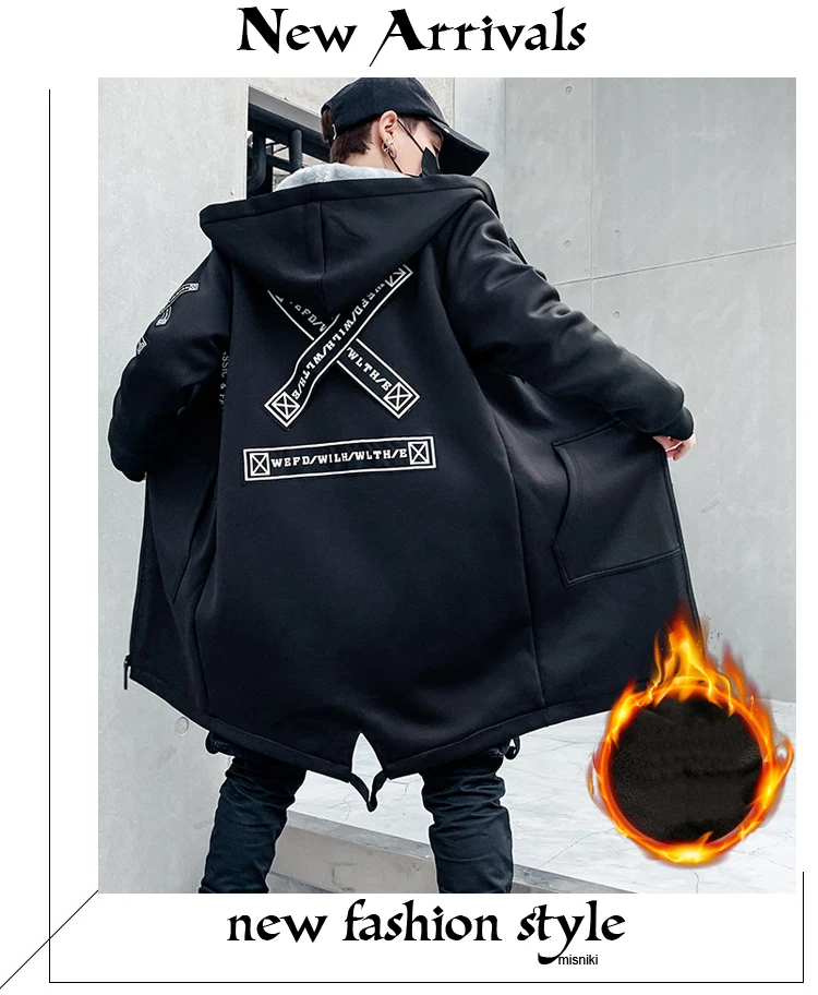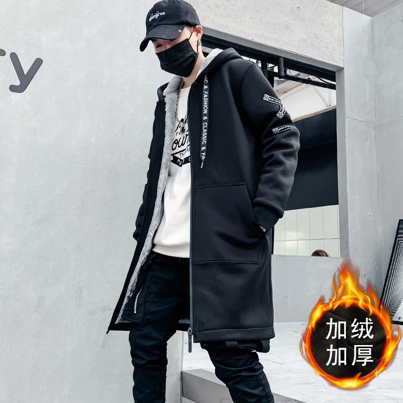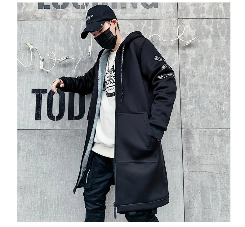 Мужская зимняя флисовая куртка с вышивкой, толстая куртка с капюшоном, Повседневная Уличная одежда 2021, черные ветровки, теплая Длинная Верхняя одежда в стиле хип-хоп