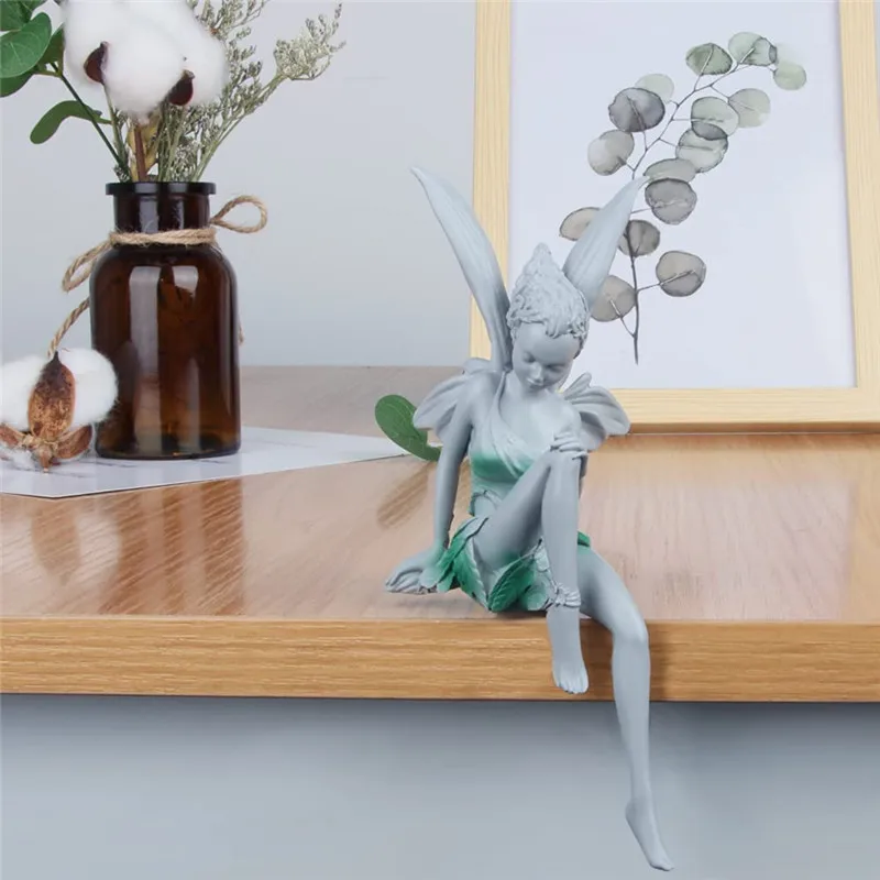 Статуя из смолы, сидящая фея, садовый орнамент, скульптура для крыл...