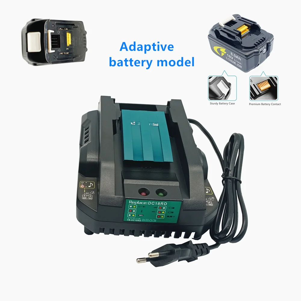 Новинка 2021, зарядное устройство для литий-ионных аккумуляторов 7,2-18 в постоянного тока, 4 а, зарядка для Makita Bl1830 Bl1430 Dc18Rc Dc18Ra, аккумулятор для электроинструмента, европейская вилка 1. Поддерживает связь с чипом памяти отдельного аккумулятора2. Распознает историю батареи3. Выявляет злоупотребление нагревом, чрезмерной разрядкой или цикловым возрастом4. Заряжает для максимального жизненного цикла и объема работы5. Анализирует состояние батареиРазмер: 125*97*170 ммТип вилки: вилка европейского стандарта, подходит для Индонезии, Германии, Франции, Испании, Италии и так далее.