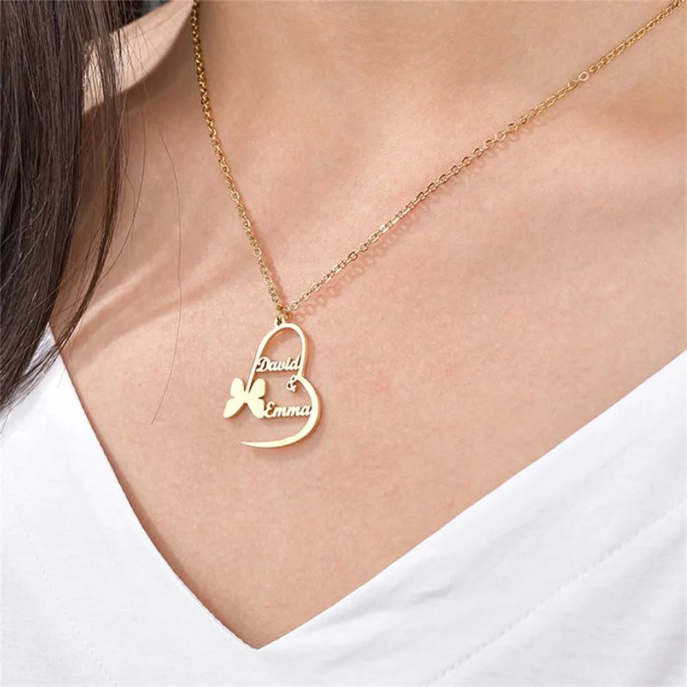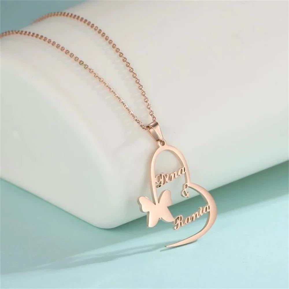 Индивидуальное ожерелье с двойным именем бабочки, женское ожерелье с бабочкой, ювелирные изделия