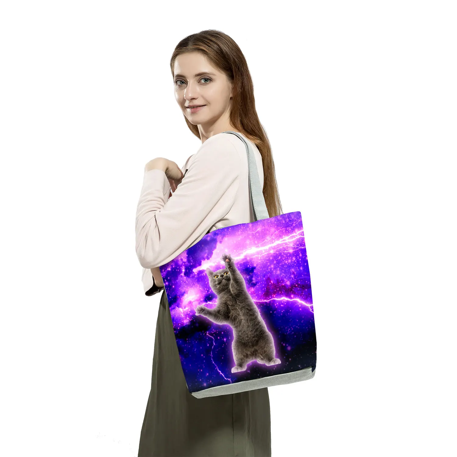 Женская сумка с кошачьими ушками, складные Экологичные тоуты в стиле Харадзюку, повседневные милые классические подарочные сумочки с индивидуальным рисунком