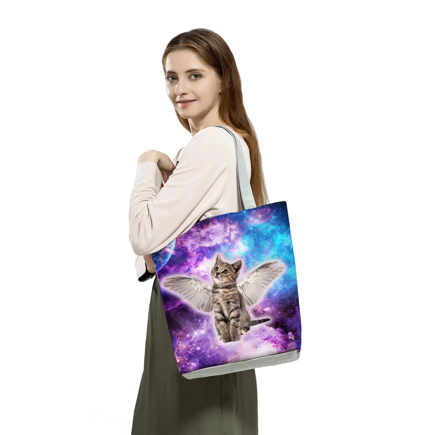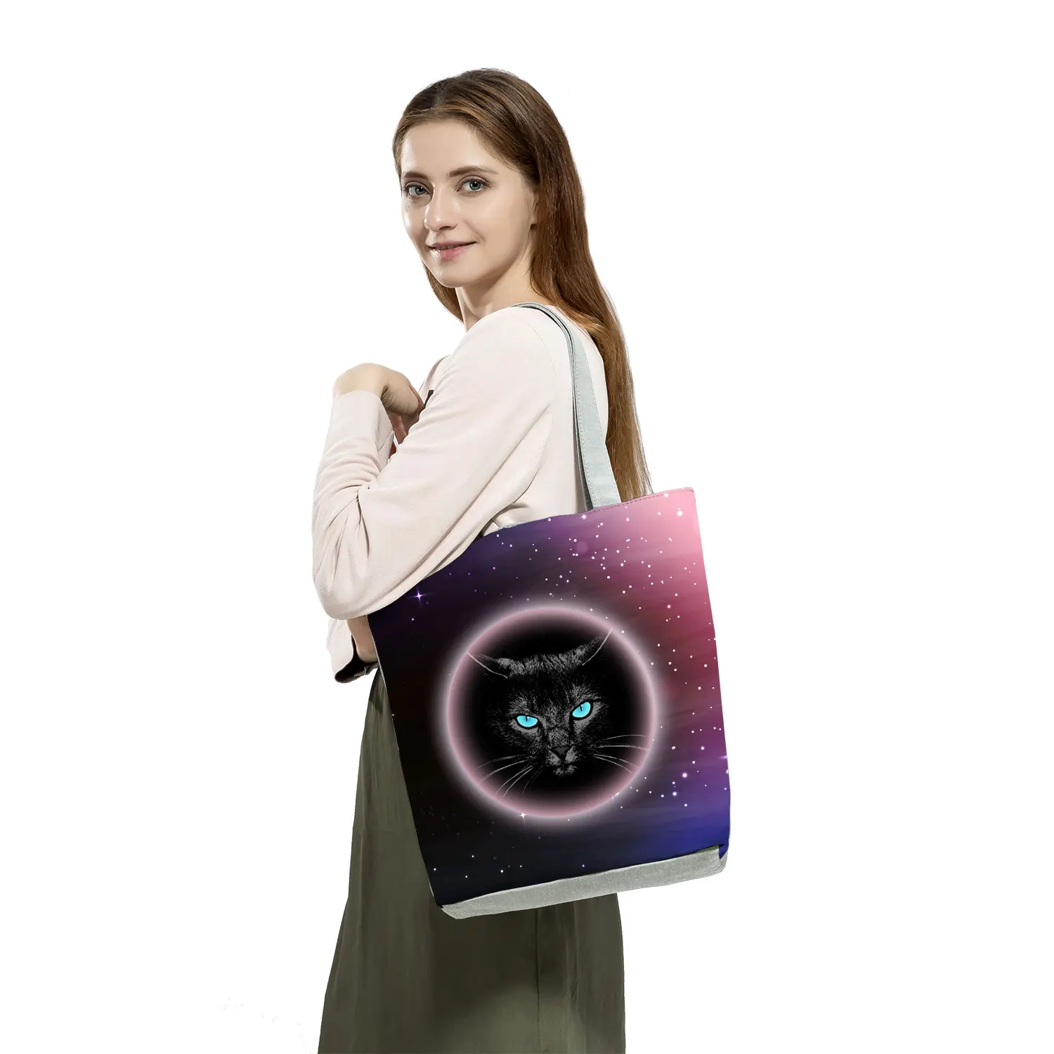 Женские сумки с заостренными ушами и кошкой, складывающиеся сумки Harajuku Eco, повседневные сумки, милые одноклассники, подарок, индивидуальный узор, Женский шоппер