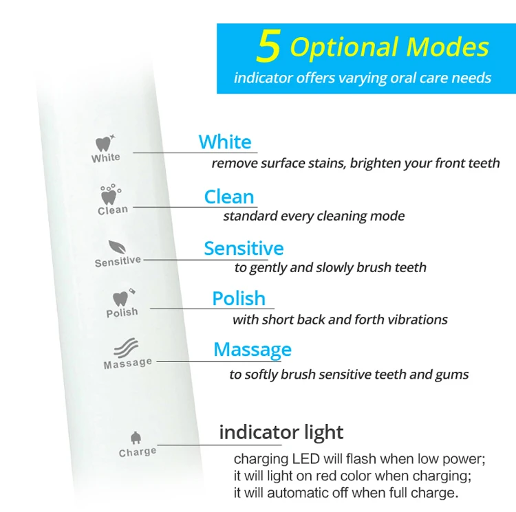 Щетка Зубная электрическая, для взрослых с таймером, 5 режимов, с зарядкой от USB