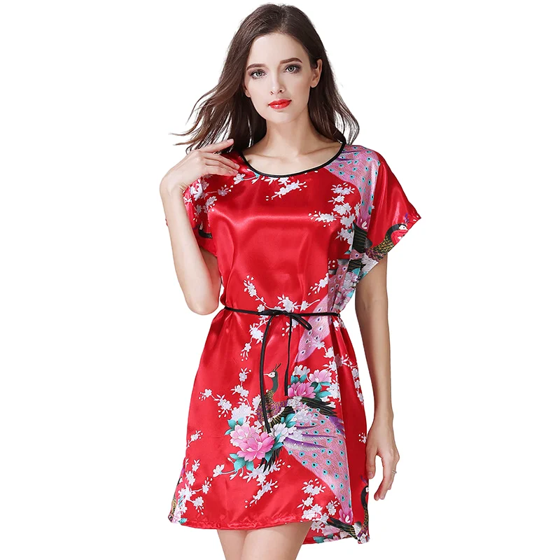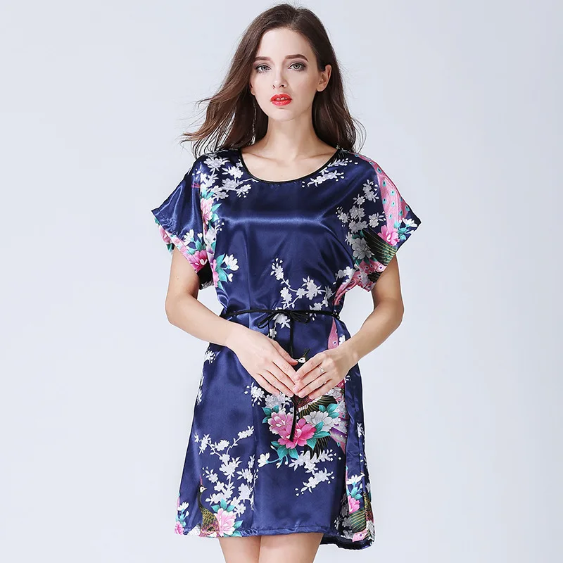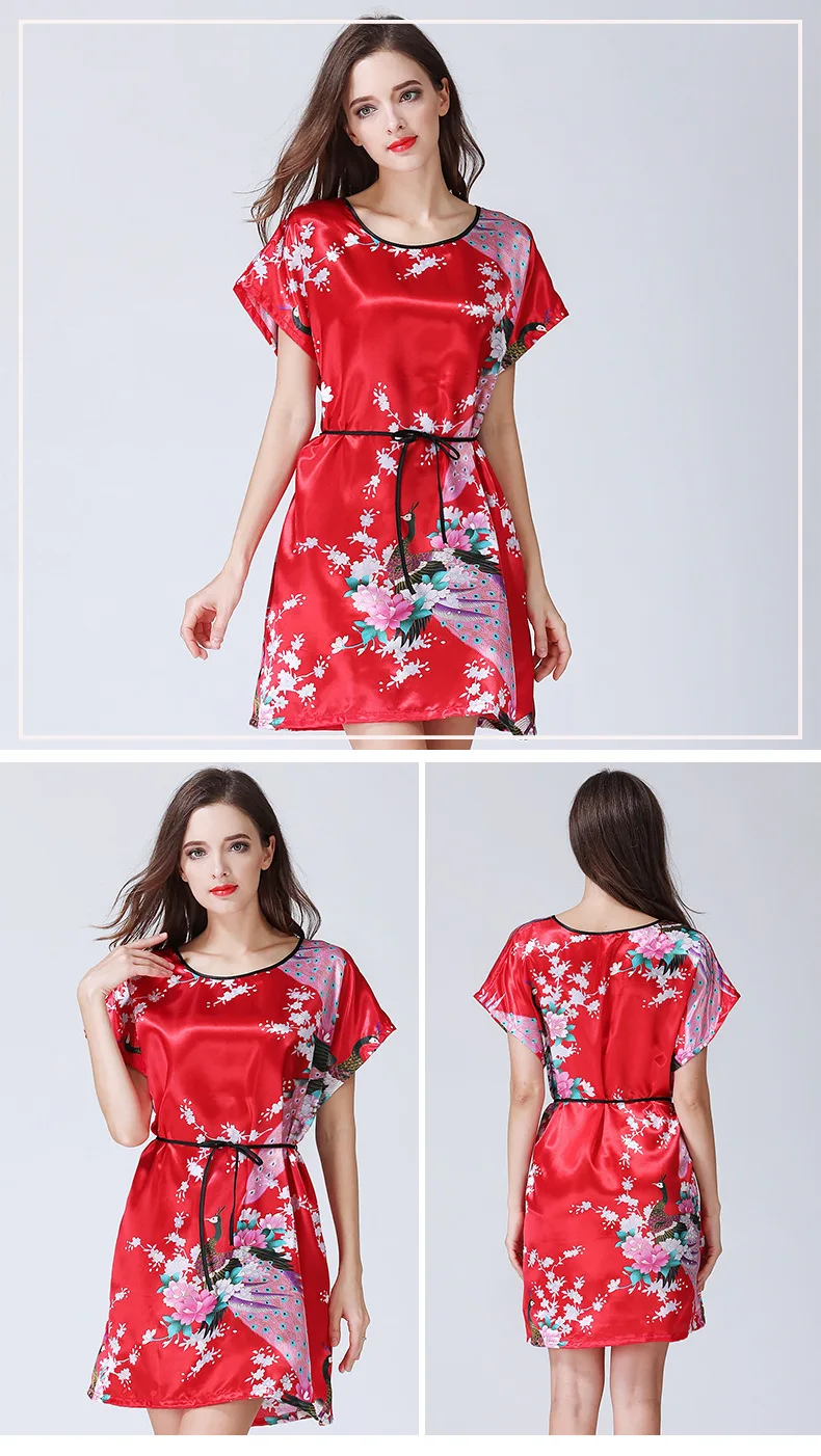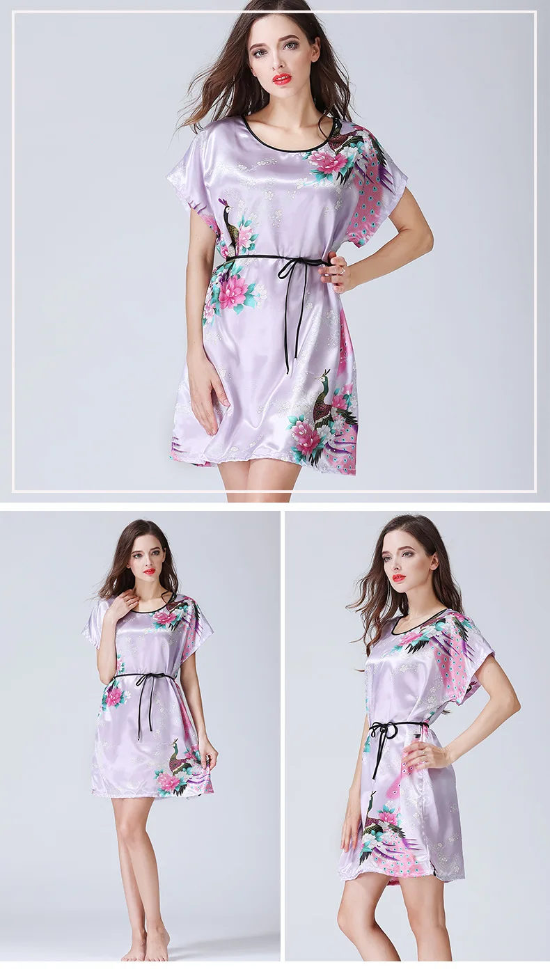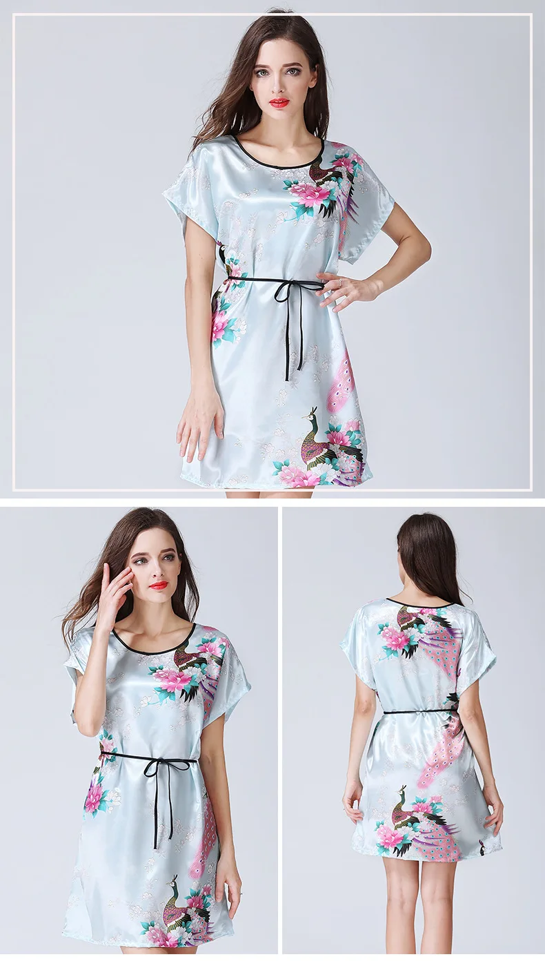 Женская пикантная мини-ночнушка, женская ночная рубашка с круглым вырезом, шелковый халат в коротком стиле