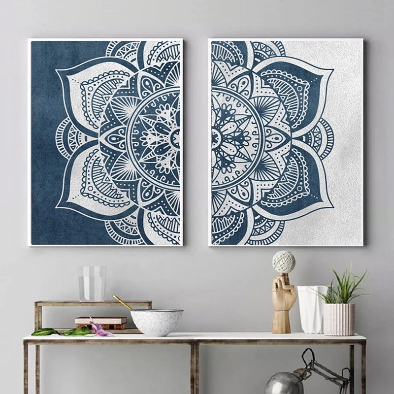 Картина на холсте с градиентом, розовая, синяя, серая мандала, постеры в стиле бохо, рисунок на стену, декоративные картины для спальни, домашний декор