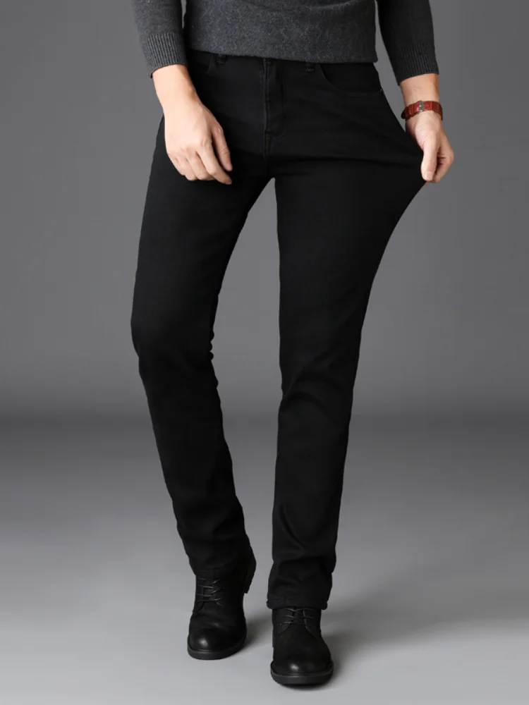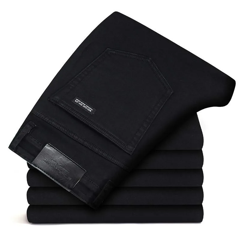 Мужские черные джинсы стрейч, классические деловые модные облегающи...
