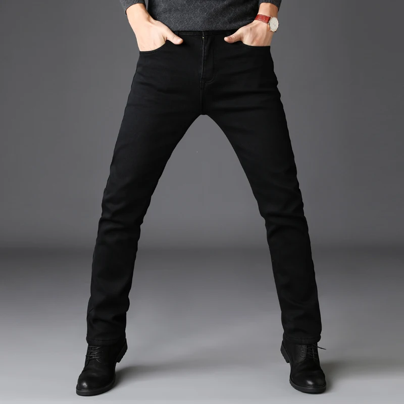 Джинсы мужские стрейчевые, классические модные штаны из денима, повседневные брюки Slim fit, чистый черный цвет, на осень
