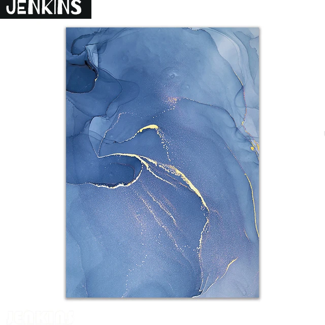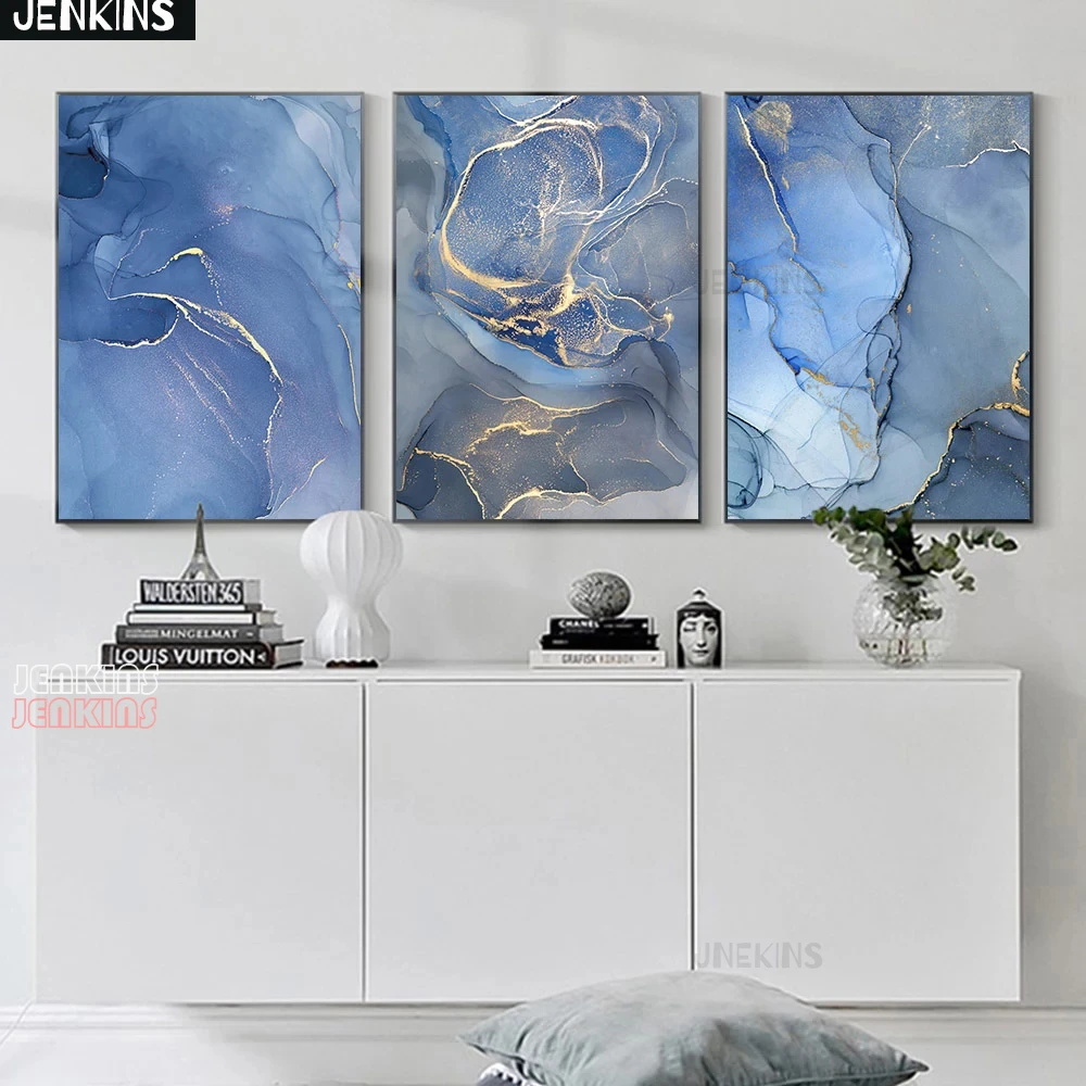 Абстрактные настенные художественные постеры и принты синего цвета с мраморным узором для гостиной, спальни, коридора, Декор