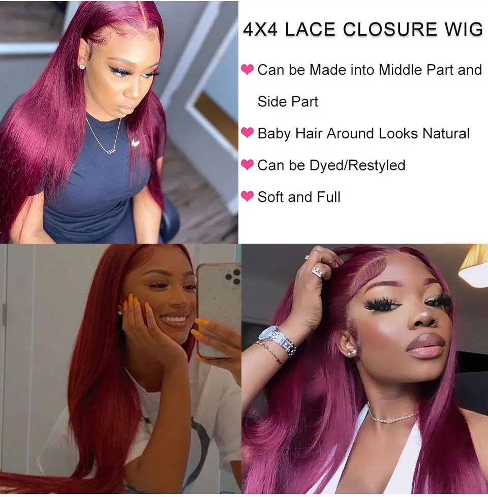 YEZ 99j бордовый кружевной передний парик 13x6 Бразильские Волосы Кружевной передний парик 30 дюймов 4x4 закрывающийся парик для женщин Y52888