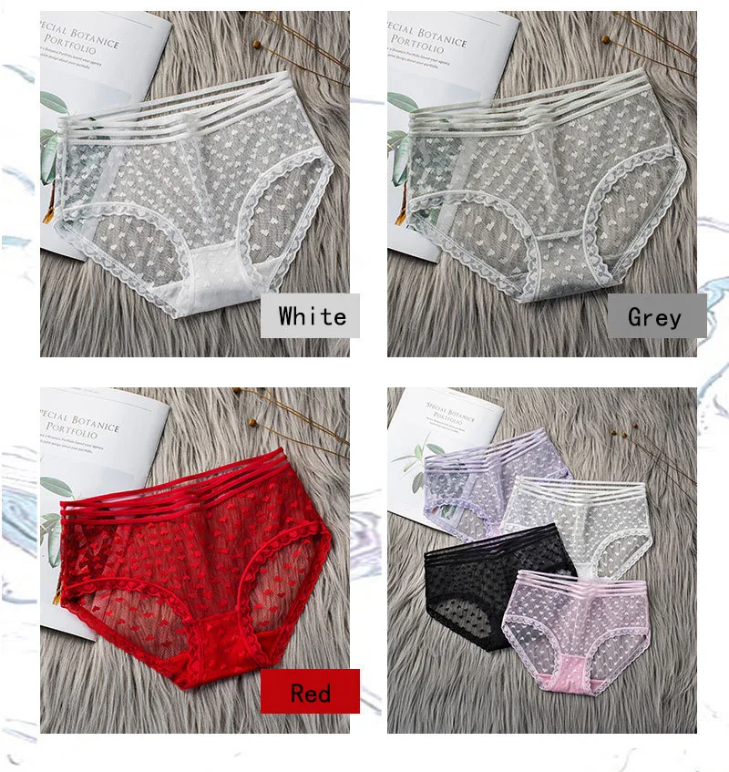 3 шт.комплект, женские прозрачные трусы с кружевом, средней посадки
