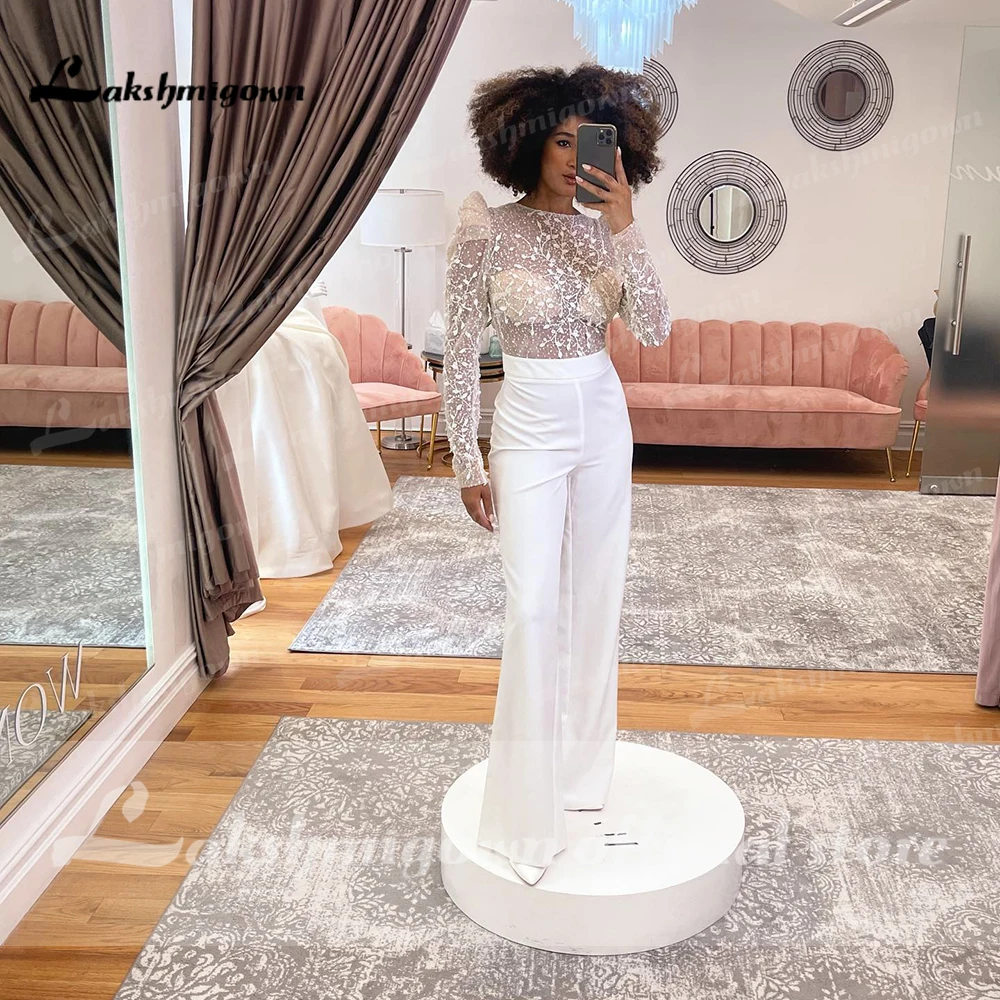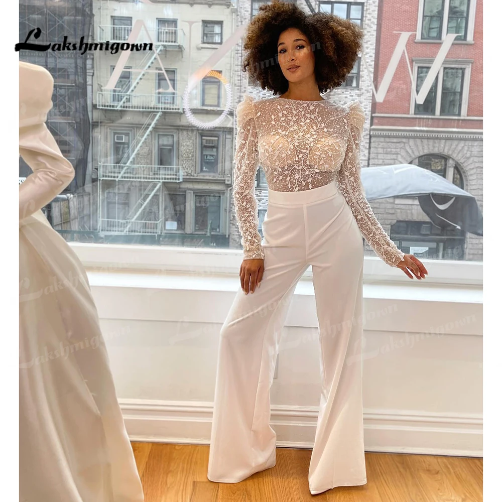 Современный Свадебный комбинезон 2022, свадебное платье в стиле бохо, украшенное камнями, кружевное богемное свадебное платье, брюки с длинным рукавом, костюм для женщин