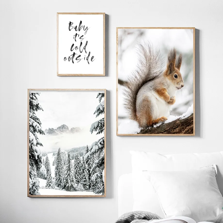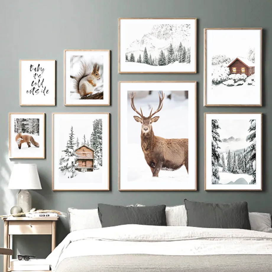 Картина на холсте Лось буйвол лиса пони кедр лес зима художественные плакаты принты для гостиной Декор Рождественский подарок