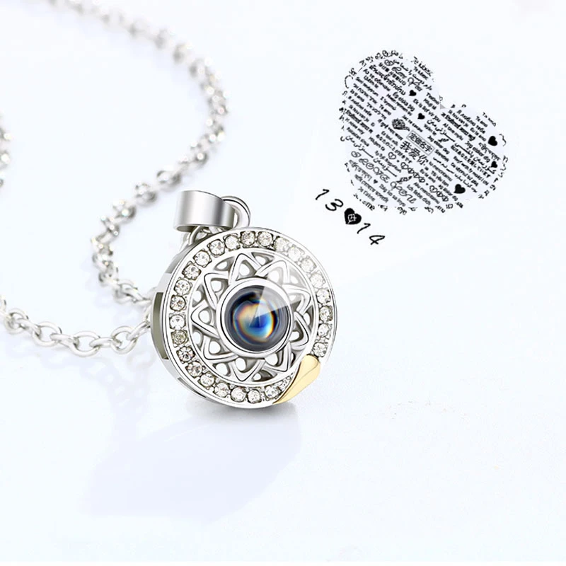 Ожерелье с проекцией Я люблю тебя на 100 языках, солнце и луна, пам...