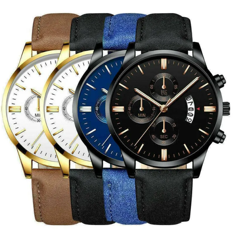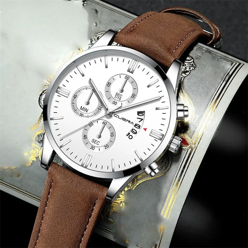 Модные мужские Роскошные Кварцевые часы с автоматическим календарем, спортивный браслет из нержавеющей стали с кожаным ремешком, наручные часы, подарок