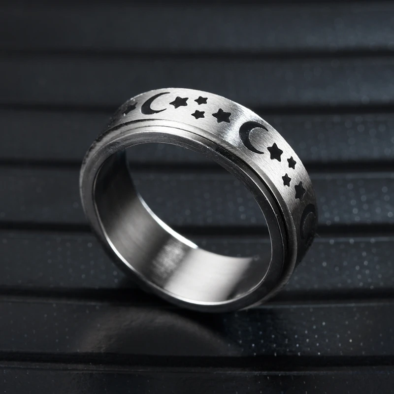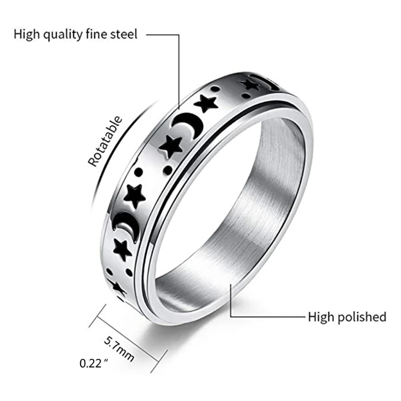 Кольцо-антистресс для мужчин и женщин, Спиннер из нержавеющей стали со звездами и Луной для медитации