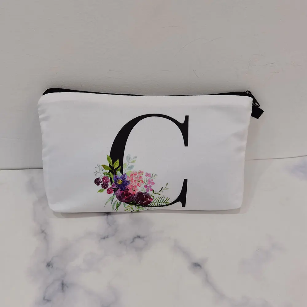 Косметичка с 26 инициалами и цветами, Женская дорожная сумка для ма...