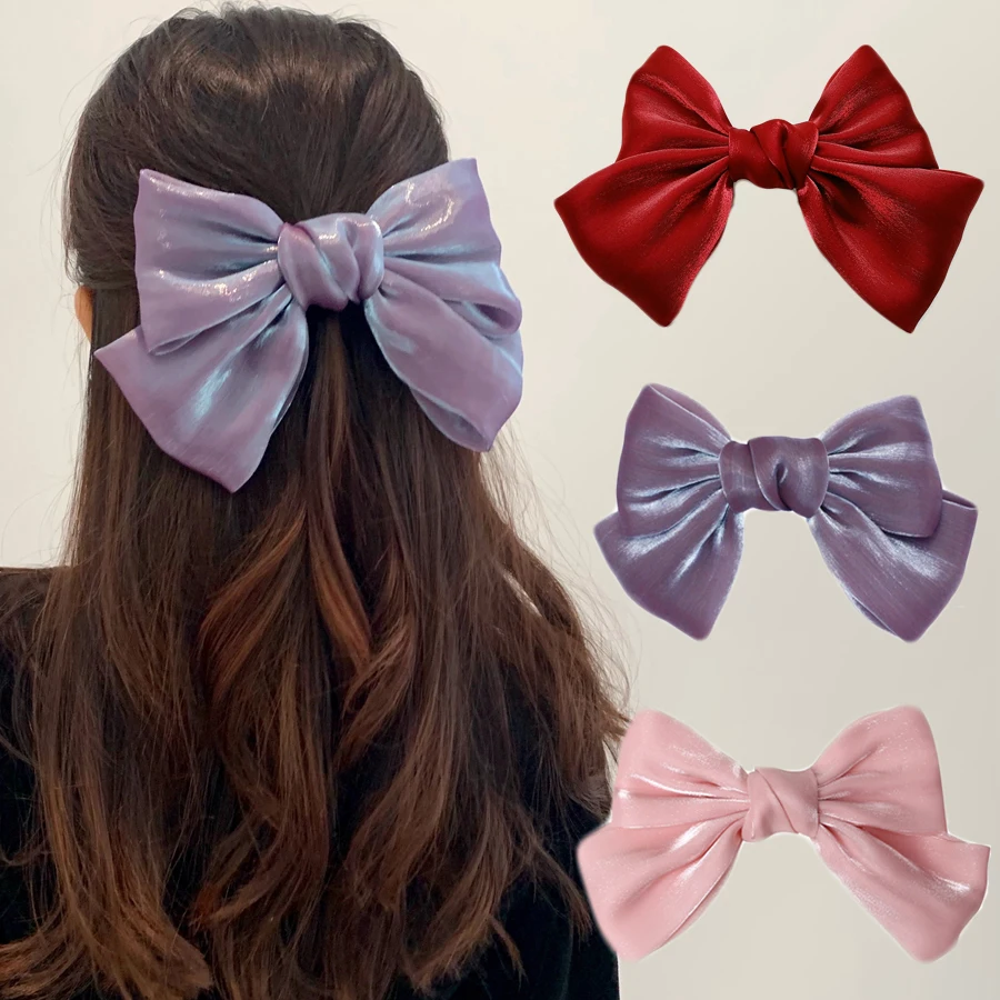 Женские атласные заколки-шпилька для лент AMORCOME, однотонные атласные заколки для волос с большим бантом, модные аксессуары для волос
