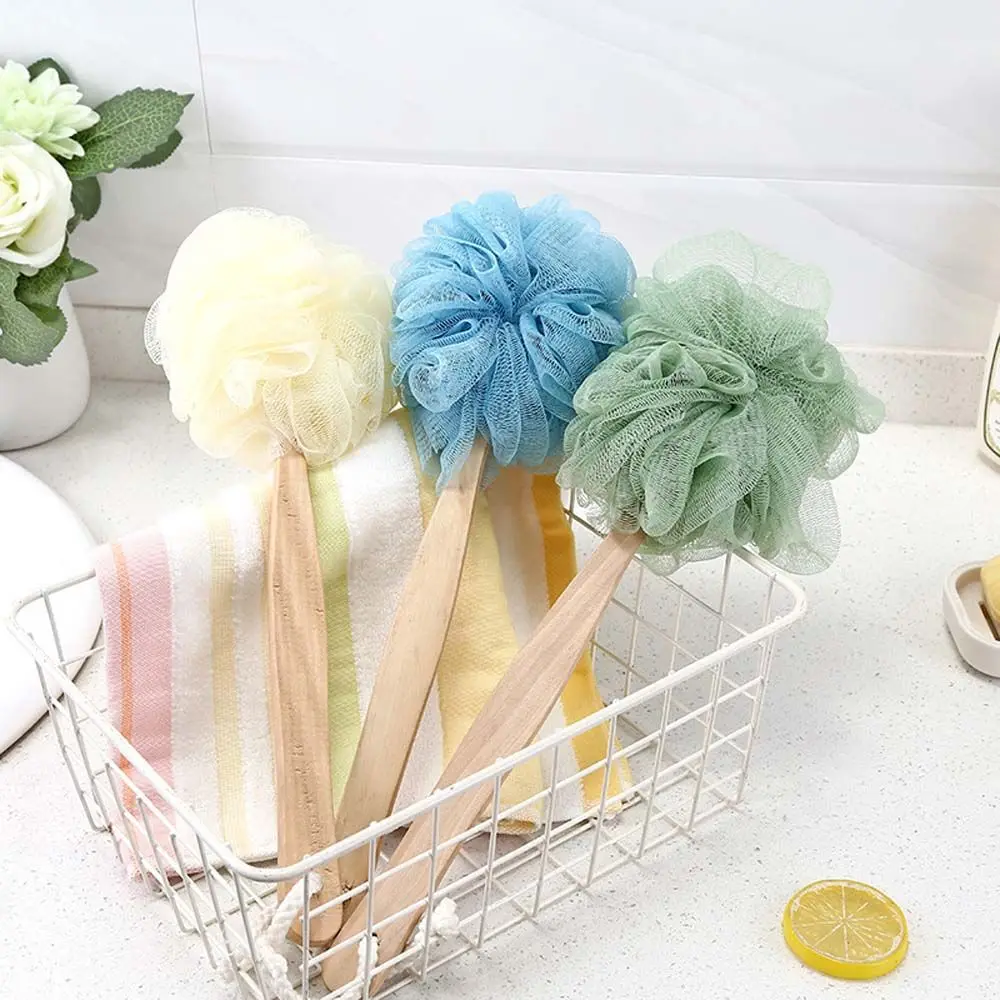 Щетка для душа с длинной деревянной ручкой, губка для ванны, массажная для женщин, мужчин, скребок для тела с подвесной сеткой, очиститель кожи для отшелушивания спины