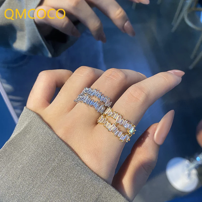 QMCOCO Роскошные циркониевые двойные серебряные кольца для женщин новые модные кольца на палец ювелирные изделия Свадебная вечеринка сексуальное кольцо для девушек