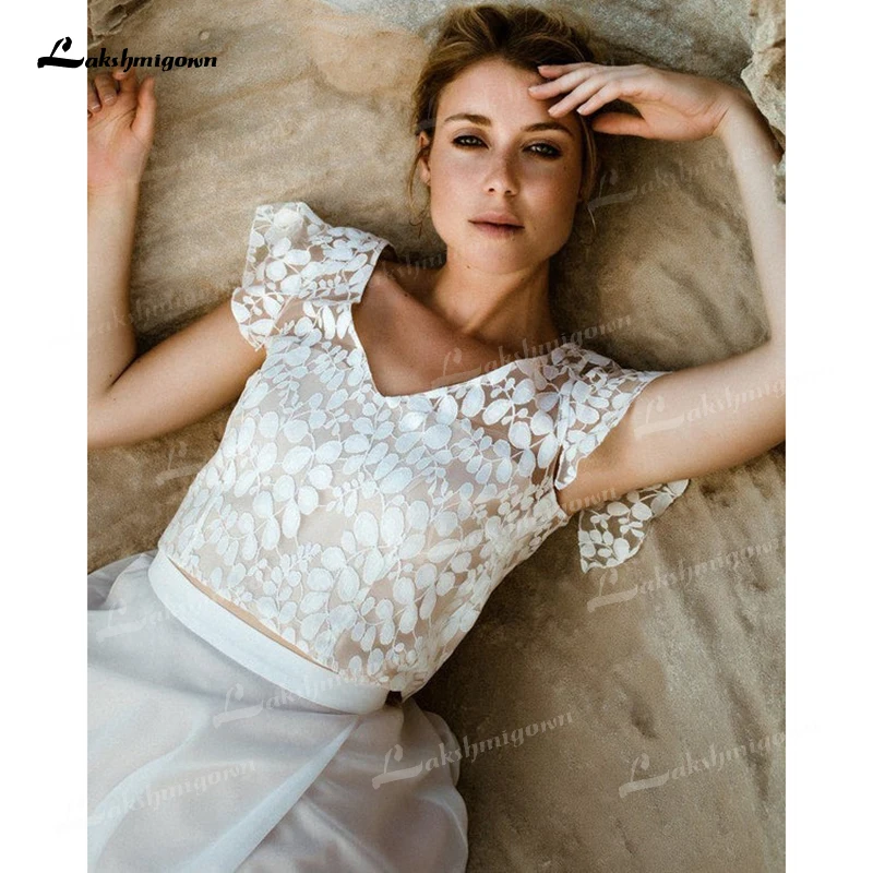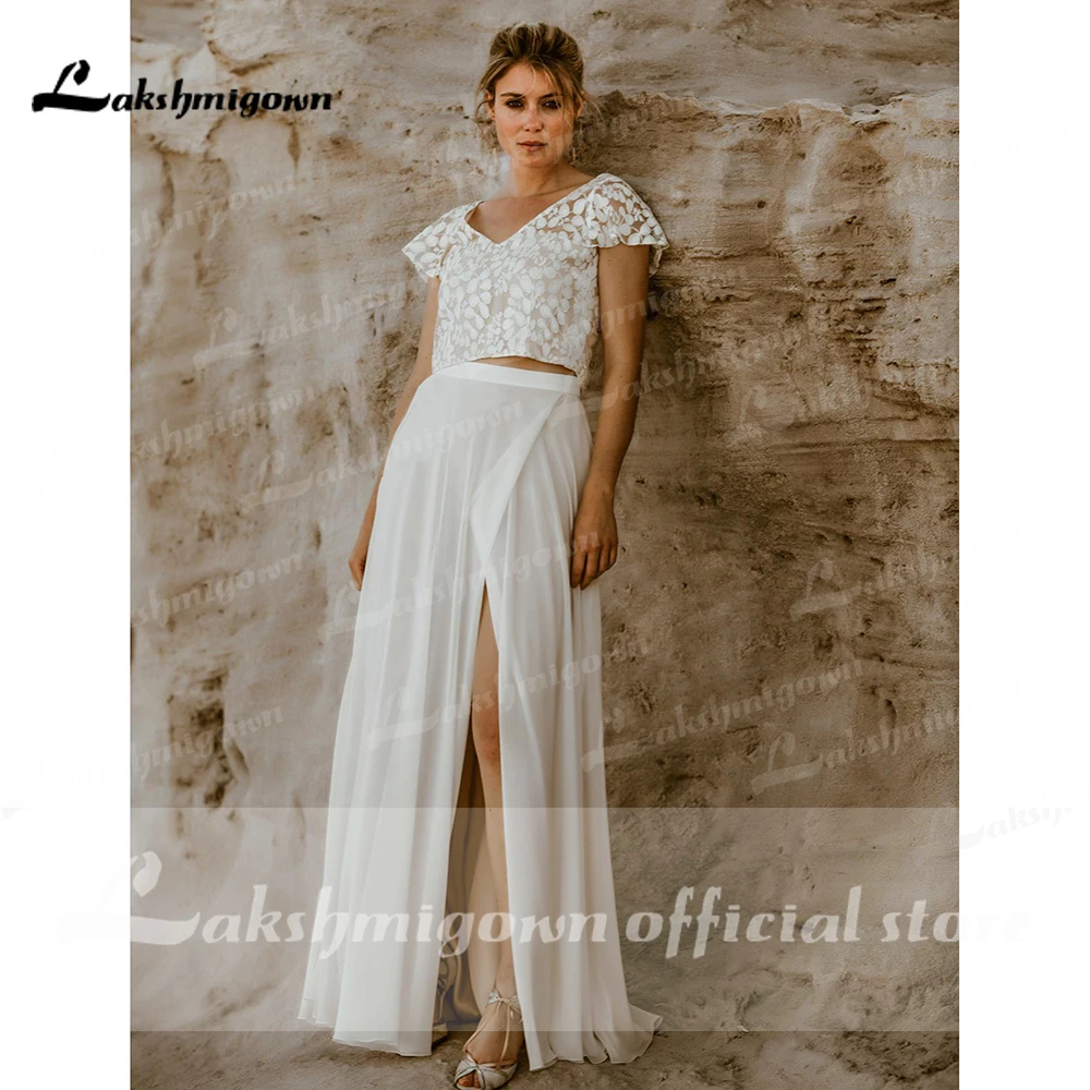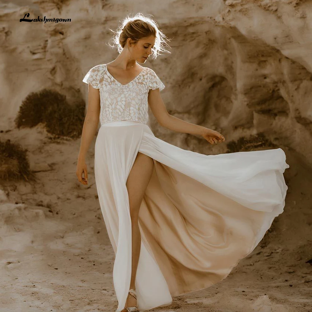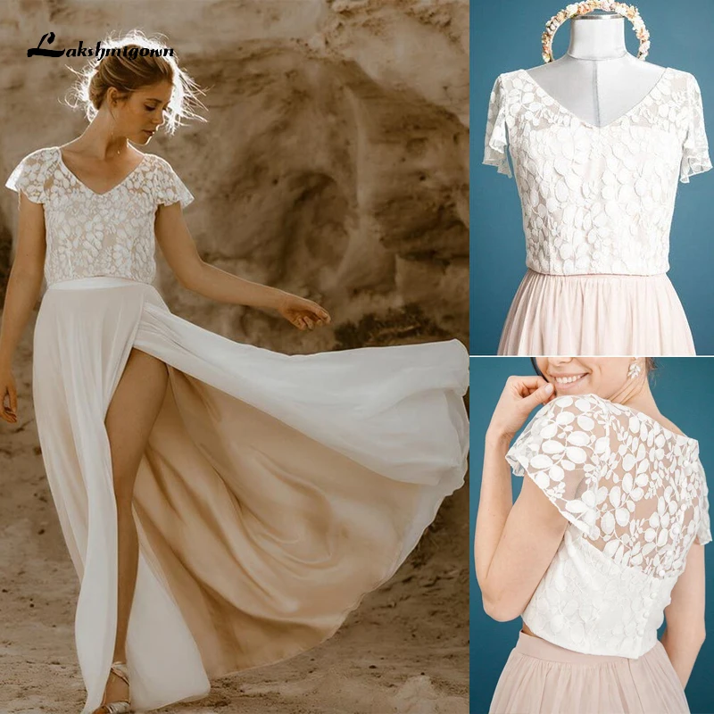 Сексуальные свадебные платья цвета шампанского, 2022, свадебные платья из двух частей, кружевная и юбка с разрезом, свадебные платья Lakshmigown