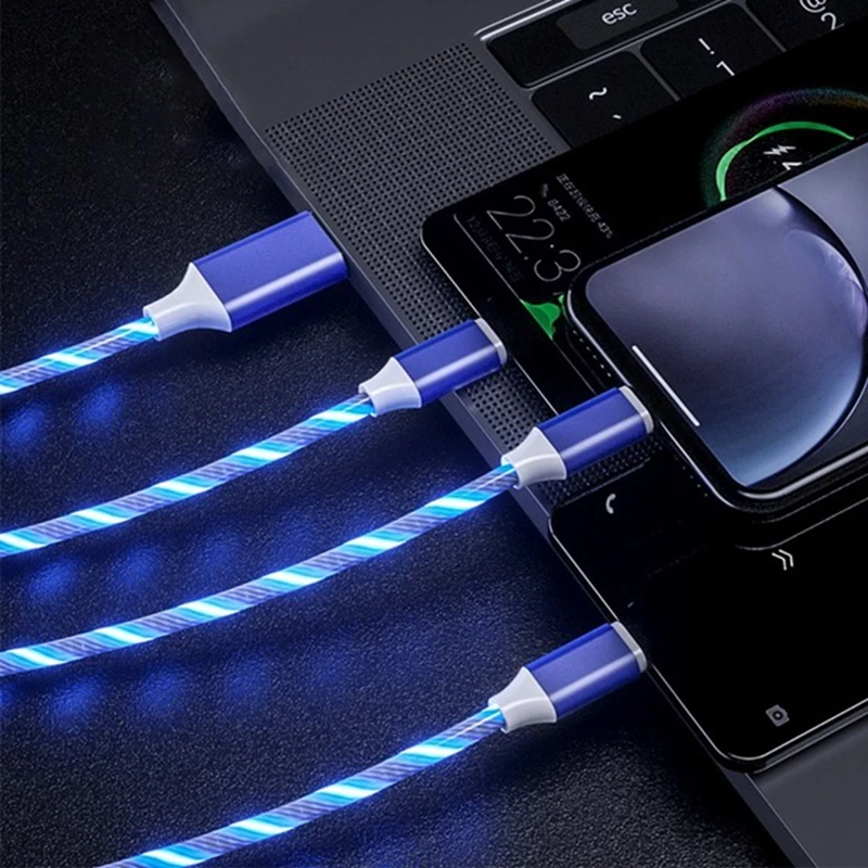 Светодиодный течет 3 в 1 USB кабель Micro USB Type C Яркий светящий...