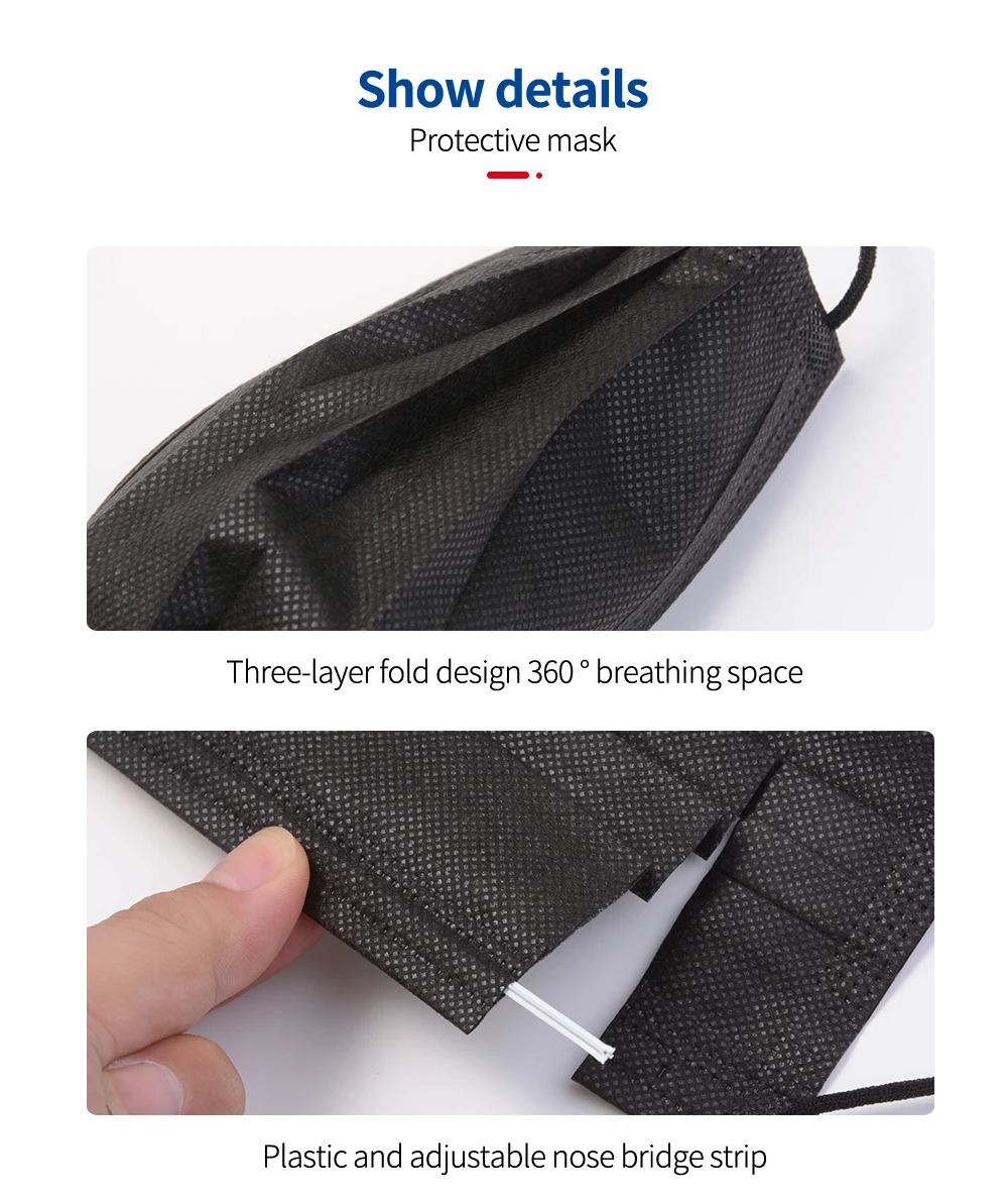Одноразовая черная маска для лица, 3-слойная защитная дышащая маска...